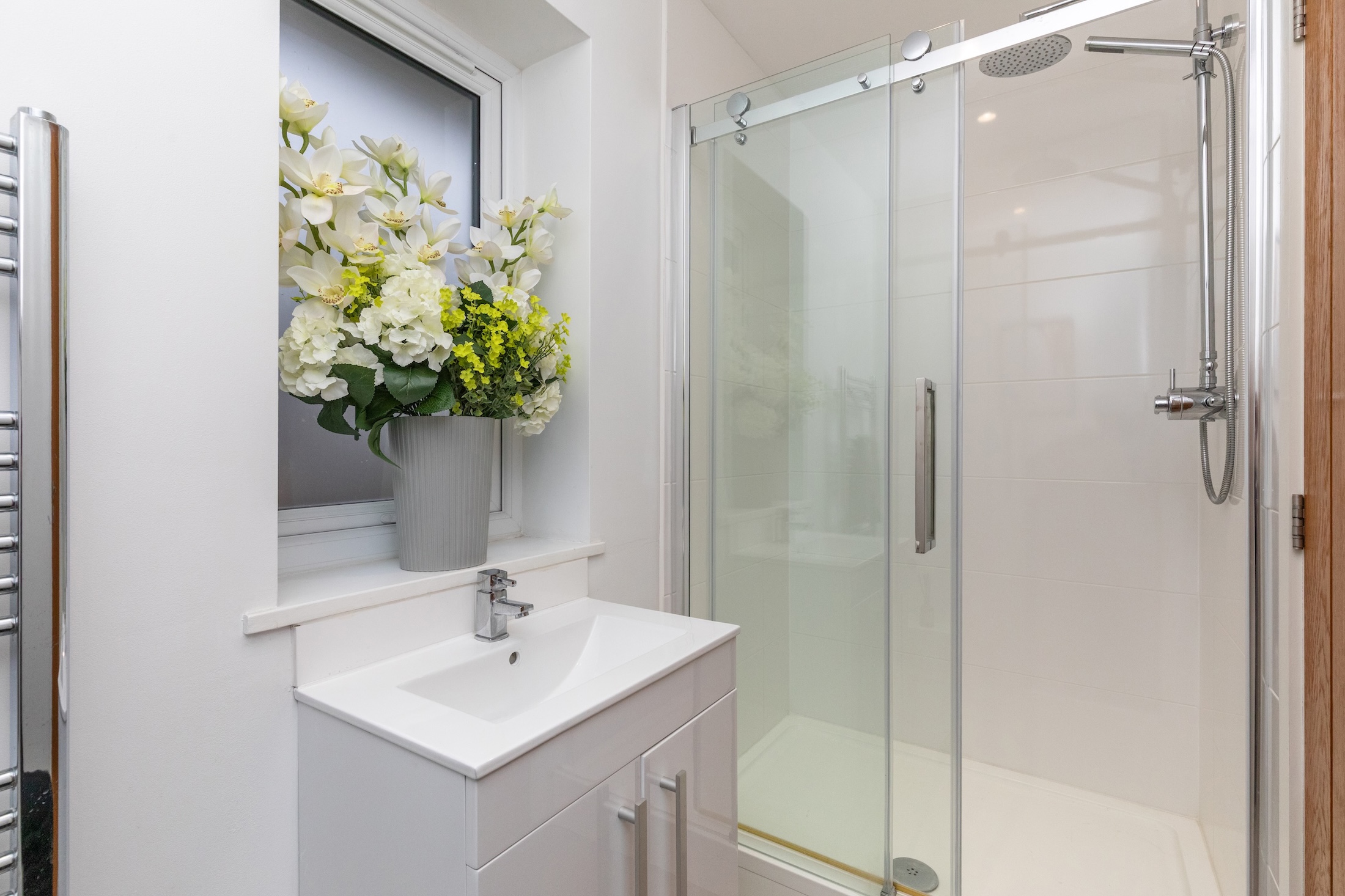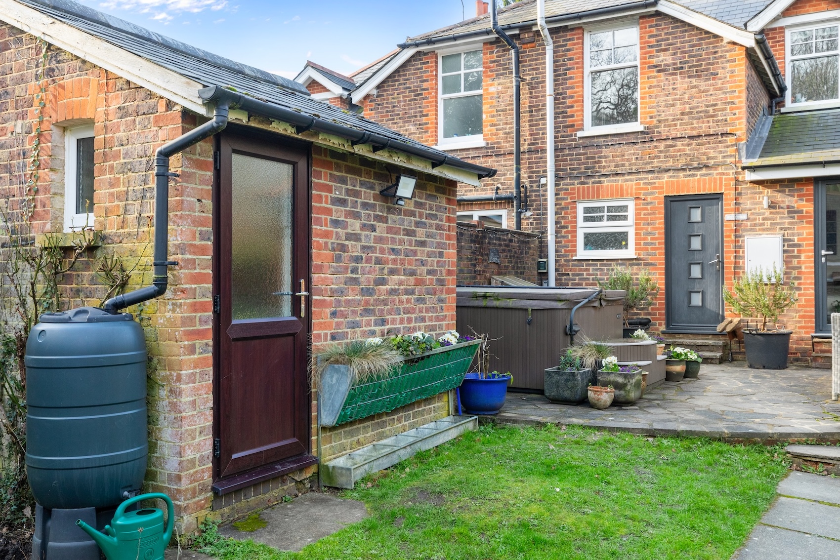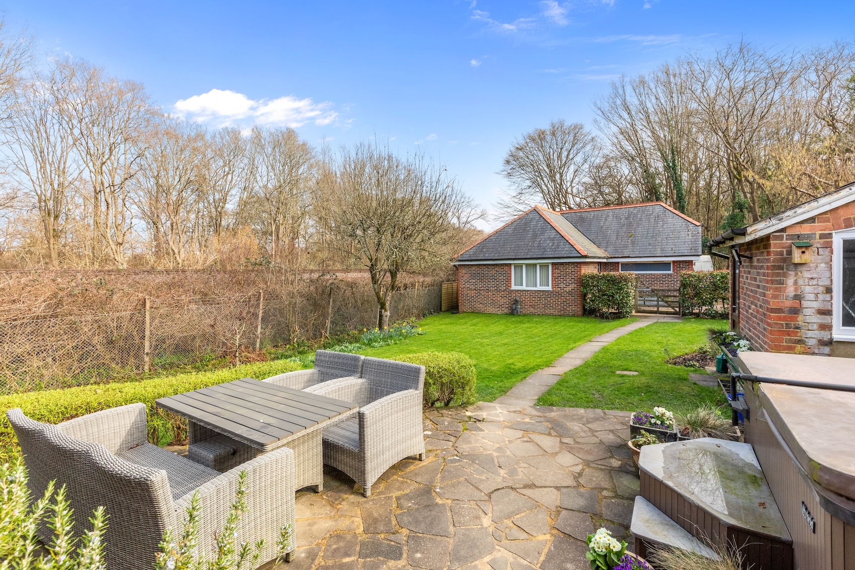 The 0.21 acre plot offers an excellent degree of privacy and the land adjacent to the railway track is protected and there is a very slim chance of any development being possible. The 233’ wide x 56’ deep (maximum measurement) garden is predominantly lawned with established borders and the path and paved seating area lead off the kitchen.