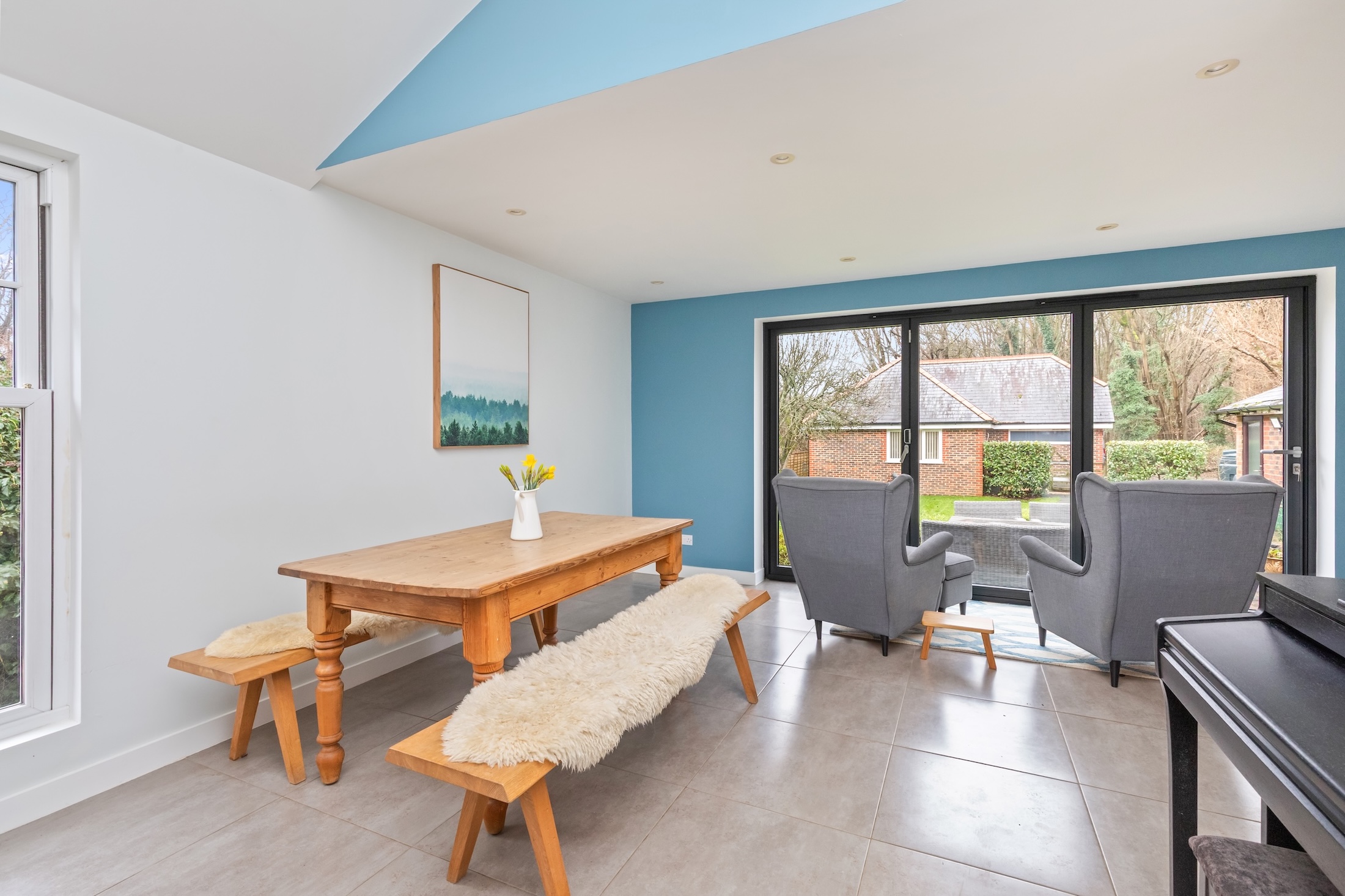 - Fantastic south east facing vaulted 33'3 x 17'8 kitchen/dining/family room with AGA and bi-fold doors