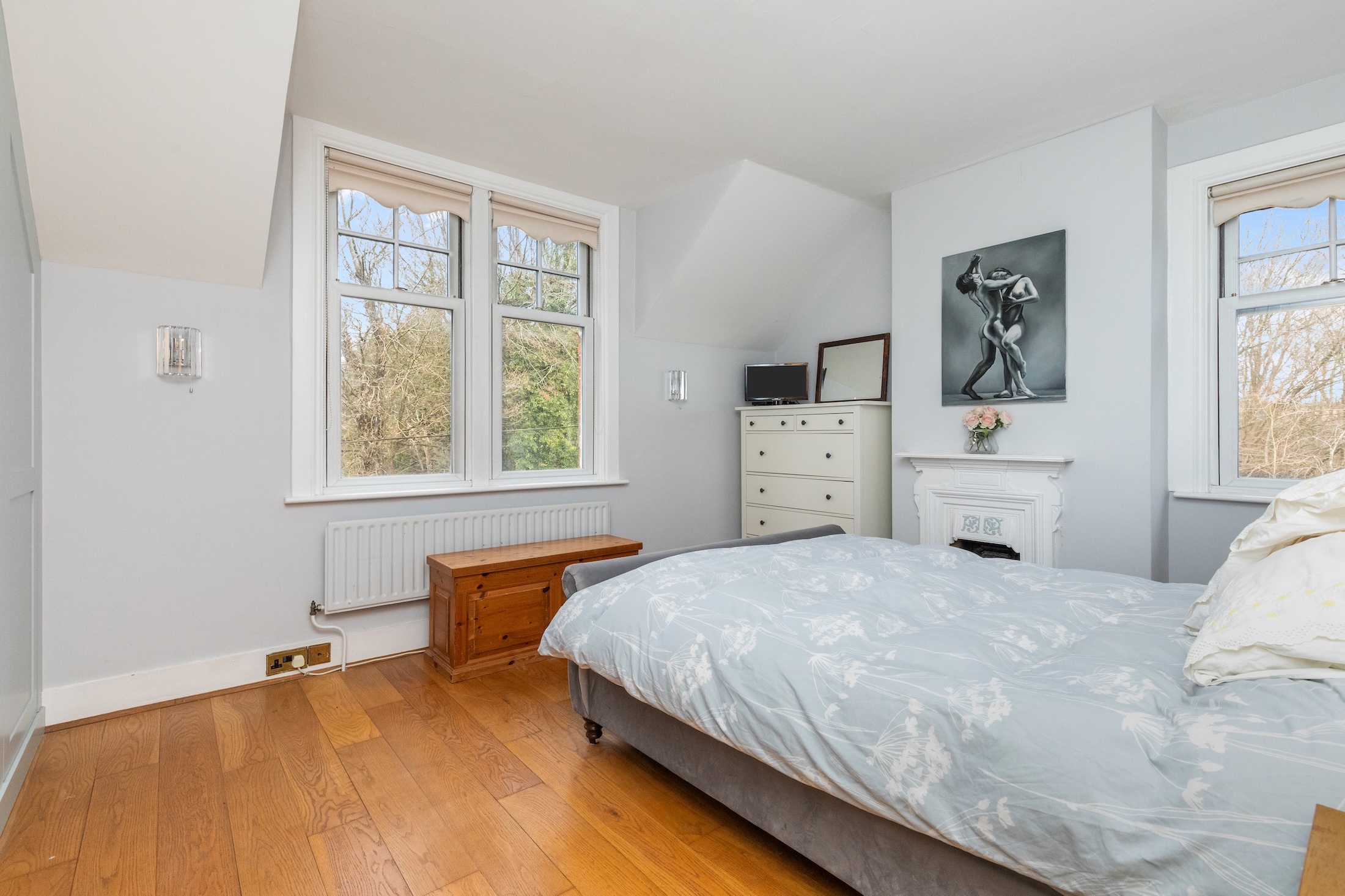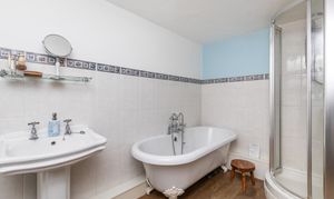 From the snug a set of stairs rise to the first floor with loft access which offers an opportunity to convert, if required. There are 3 well-proportioned double sized bedrooms with feature fireplaces, and the principal bedroom is equipped with a bespoke selection of fitted wardrobes.