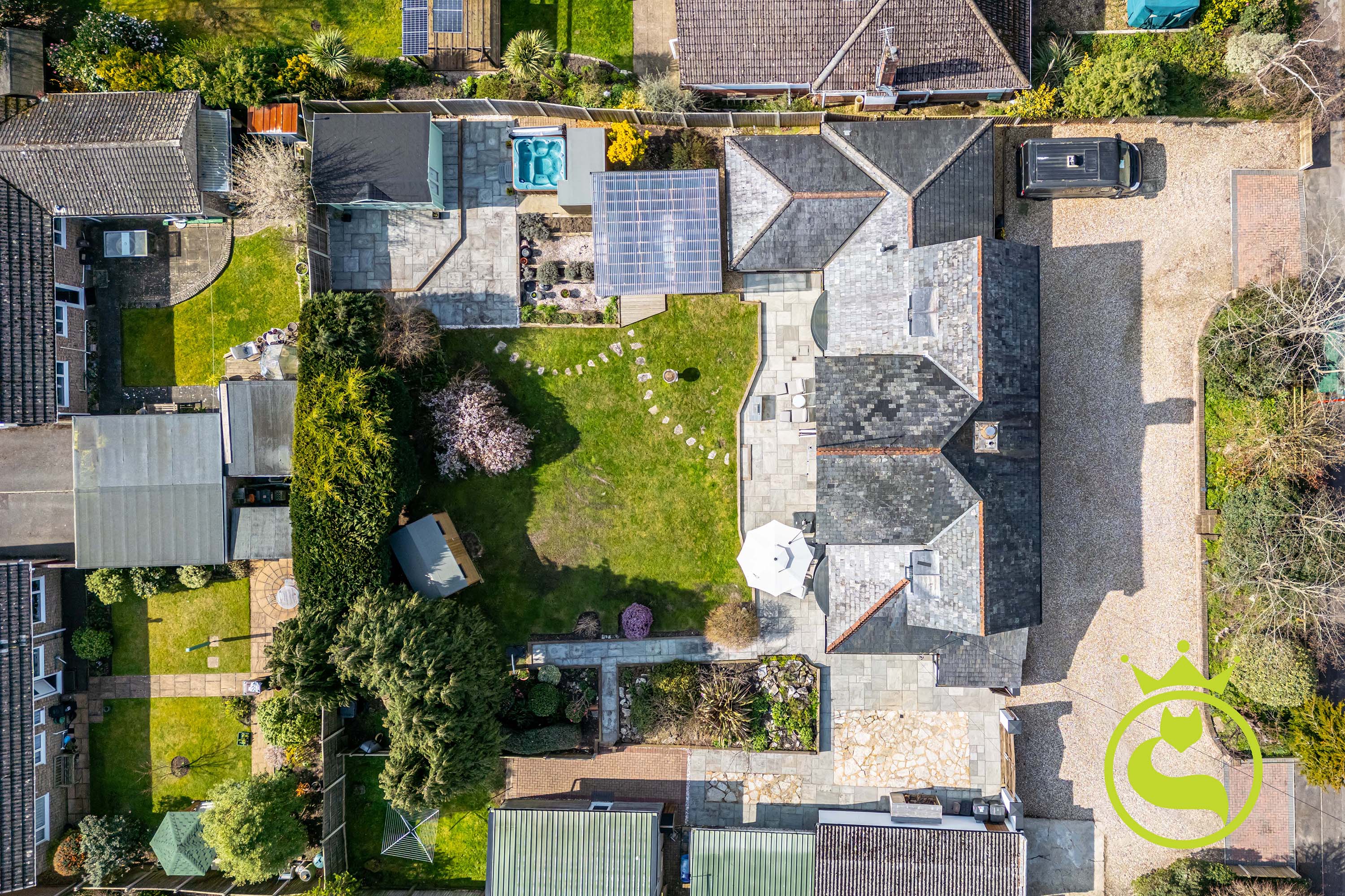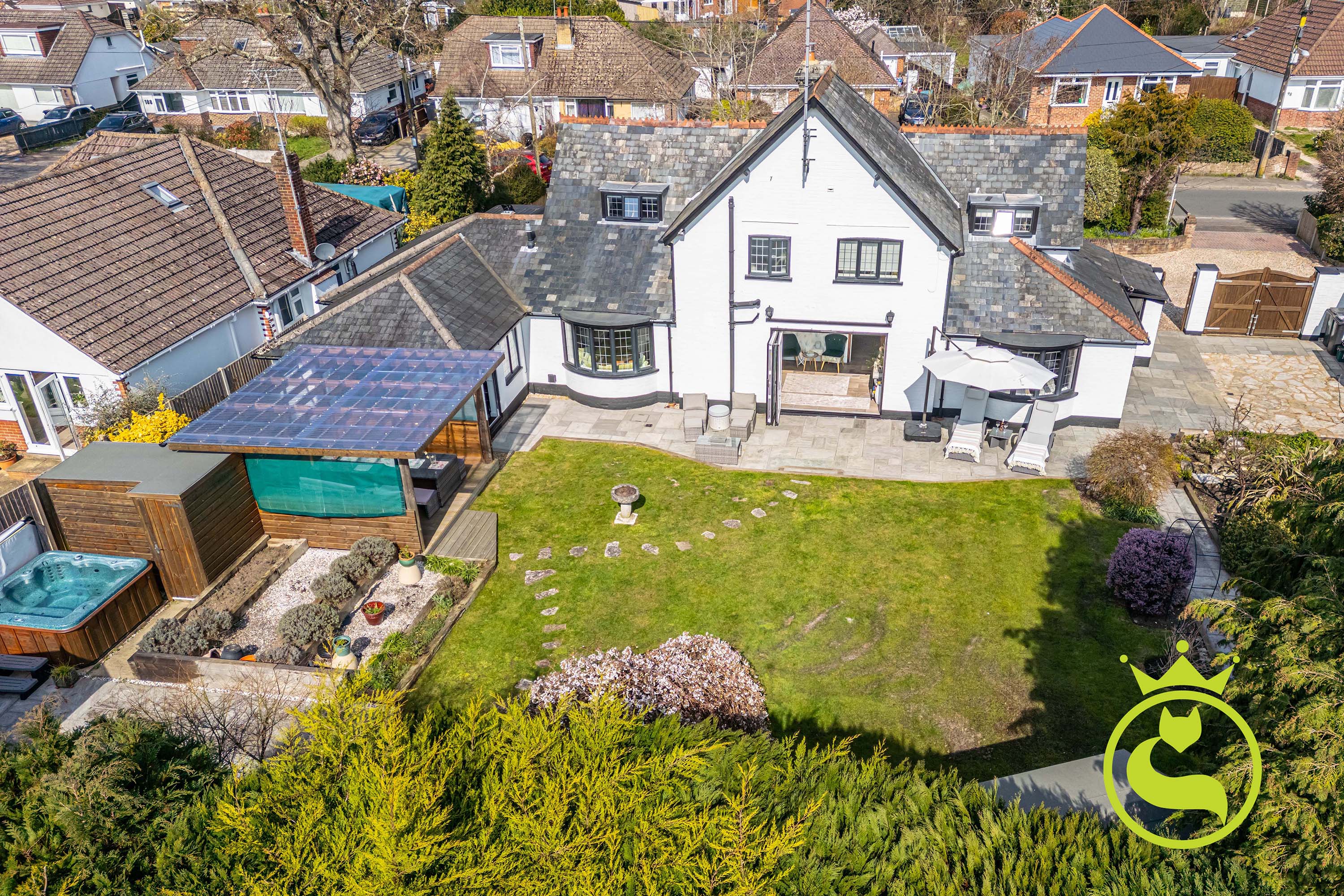 Set within approximately ¼ acre, the grounds offer a variety of spaces designed for both relaxation and entertaining. With an array of established plants, flowers and trees. There is a hot tub area and BBQ area ideal for gatherings. A summer house, various outbuildings not forgetting the garden gym/sauna (the owner would include the equipment as part of the sale, subject to negotiation)