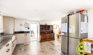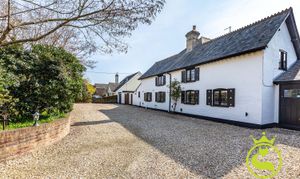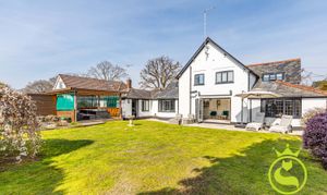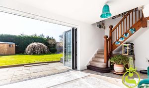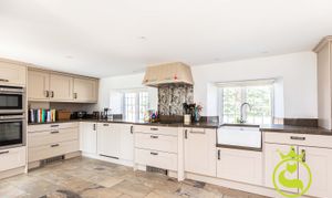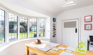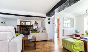 The principal accommodation includes four well-proportioned bedrooms and a spacious L-shaped lounge, naturally arranged to create two comfortable living areas. A log burner provides a cosy focal point in the cooler months, while bay windows and bifold doors allow plenty of natural light and connect the living space to the garden beyond. The large farmhouse styled kitchen/family/diner is a great place to socialise and entertain with a convenient utility area off of. In the centre of the house there is an inner hallway/vestibule area with tri-fold doors onto the garden which can be used as a pleasant study area.