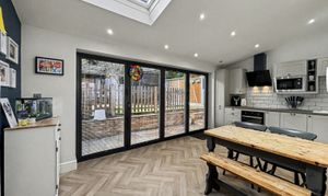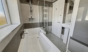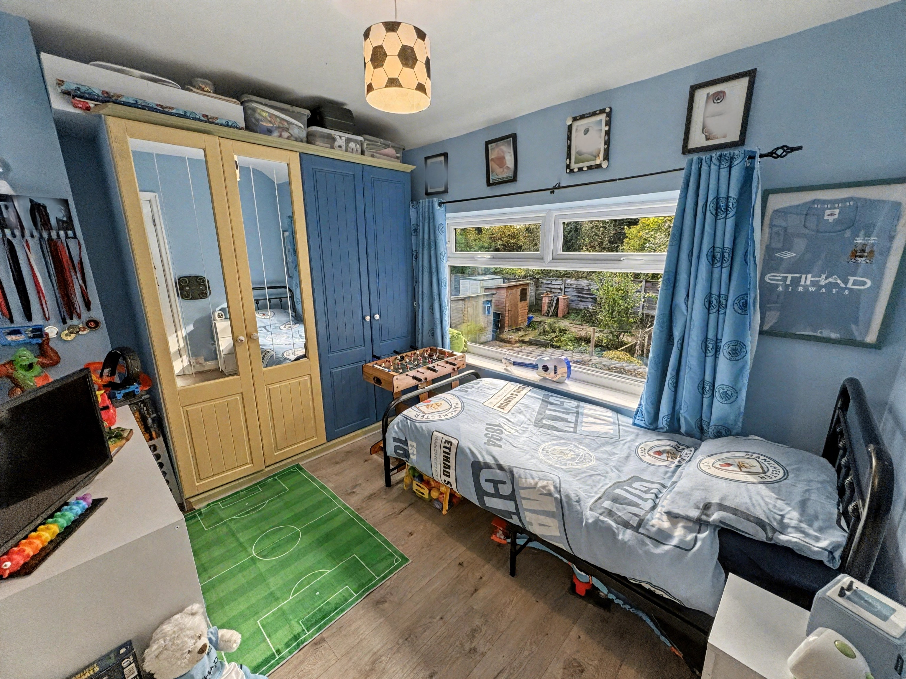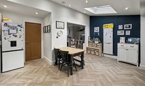 Upstairs, three well-proportioned bedrooms offer flexibility for growing families, home working, or guest accommodation. The family bathroom is finished to a modern standard, combining comfort with elegant design.