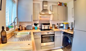 The well-appointed kitchen/diner is a true highlight of this property, offering a space where meals and memories are made. Complete with french doors that open onto the rear, this area is flooded with natural light, creating a welcoming atmosphere that is perfect for hosting gatherings or simply enjoying a quiet breakfast.