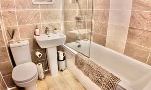 Make your way upstairs to find two double bedrooms, each equipped with built-in storage solutions that help keep the space clutter-free and organised. The family bathroom is conveniently located nearby, ensuring that your daily routines are a breeze.