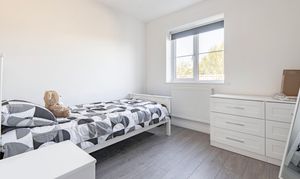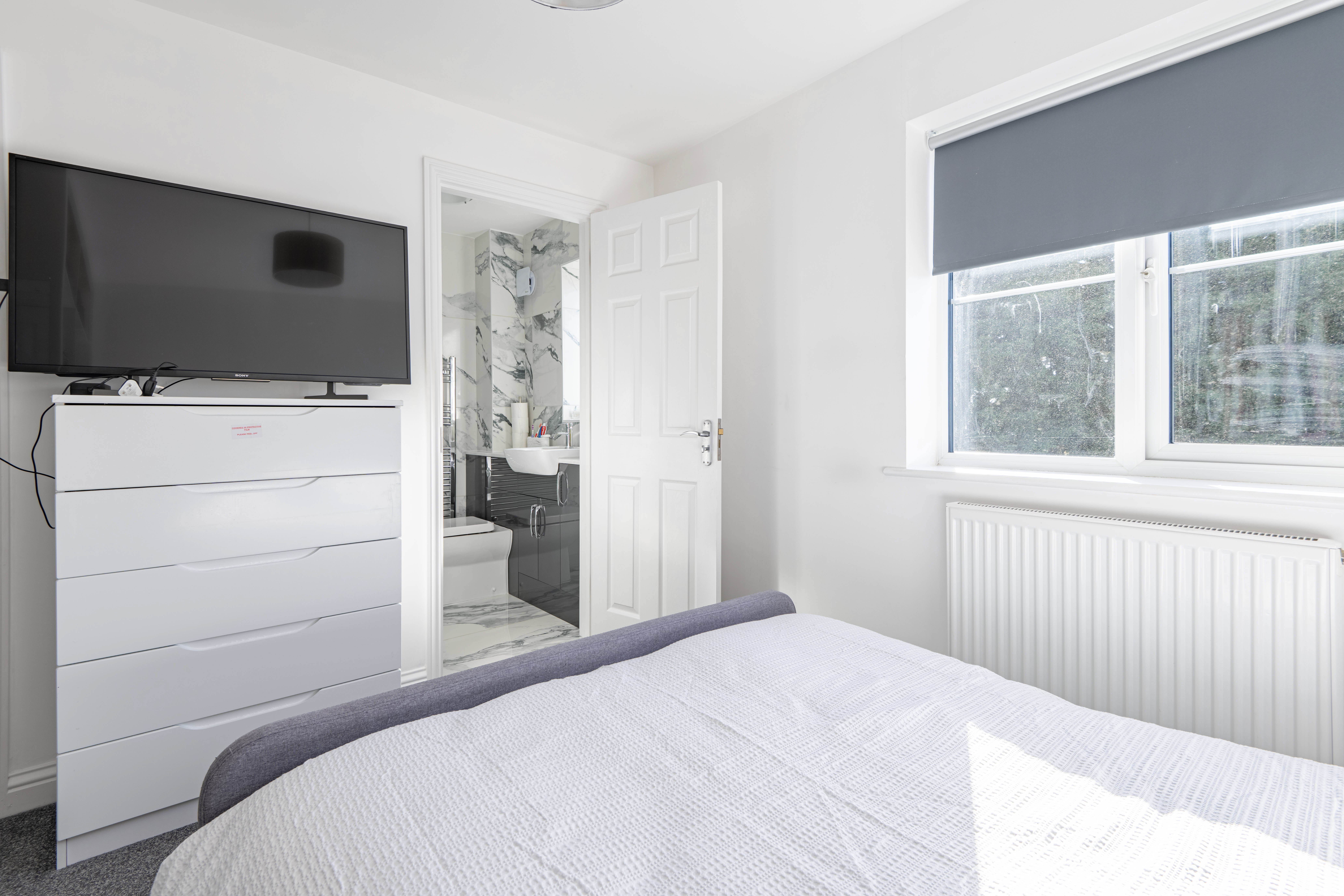 Upstairs, there are three bedrooms, including a principal bedroom with its own ensuite shower room. The remaining bedrooms are served by a main bathroom accessed from the landing, providing practical accommodation for family living or guests.