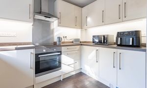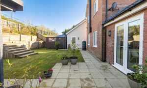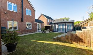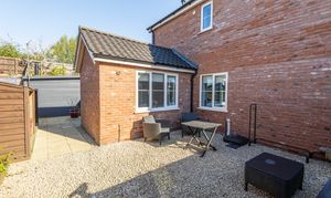 Nestled within an exclusive enclave of just nine homes on Treasure Grove, this three-bedroom residence combines modern living with a tranquil setting. The property features a practical layout, including a welcoming entrance hall, cloakroom, and a U-shaped kitchen with integrated appliances. A bright, open-plan sitting and dining area provides a sociable space, enhanced by a stylish multi-fuel burner and direct garden access. Upstairs, the principal bedroom benefits from a private ensuite, while two further bedrooms share a well-appointed family bathroom. Outside, the tiered garden offers a mix of lawn and patio areas, creating both privacy and versatility for outdoor living. A double-glazed outdoor cabin extends the functional space, ideal for work or hobbies, complete with electricity, WiFi, and heating. Additional conveniences include a detached garage, driveway for multiple vehicles, EV charging point, and triple glazing throughout for energy efficiency.