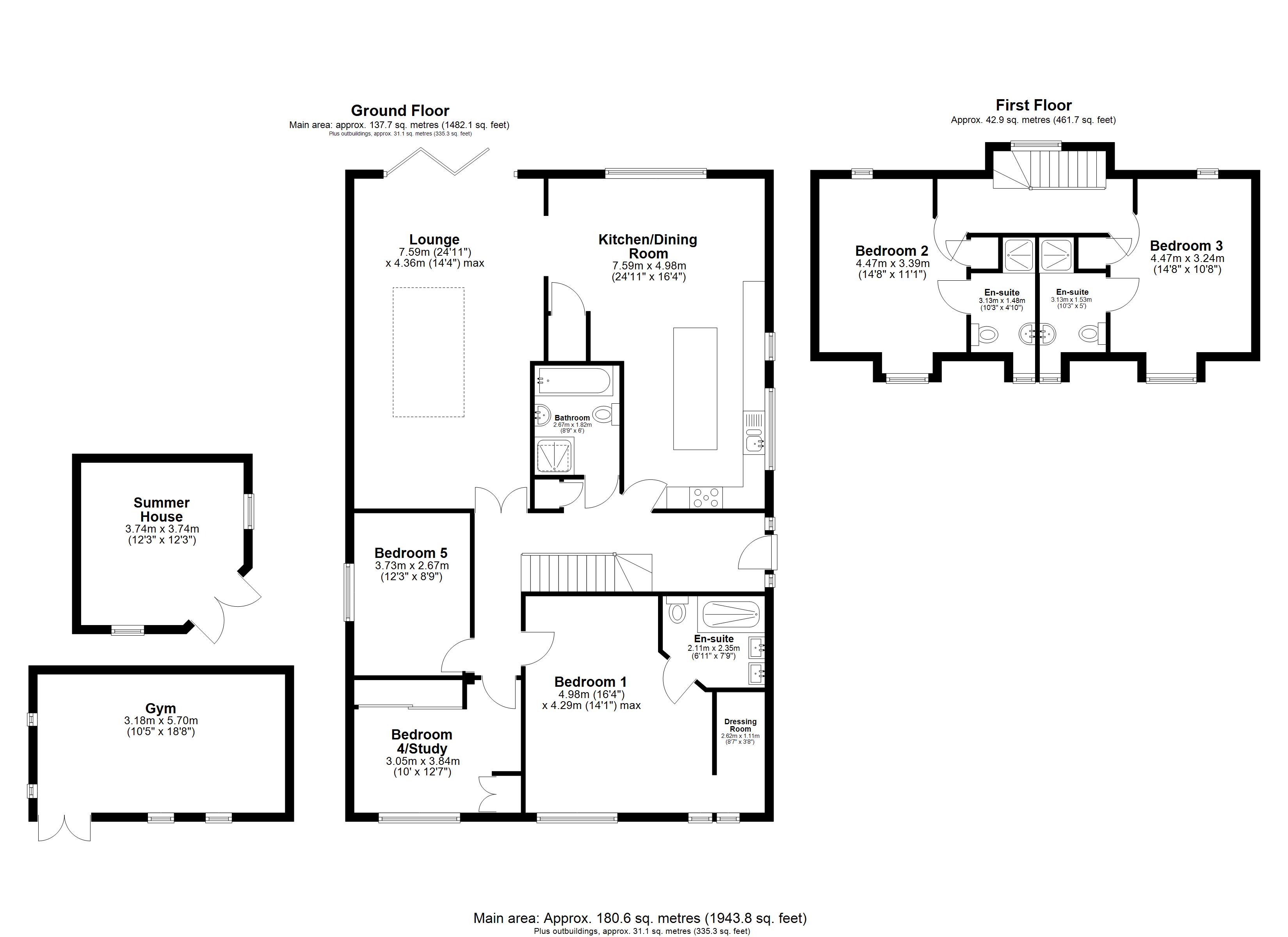 Through to the downstairs sleeping quarters, there is the stunning primary suite, complete with a dressing room and en-suite shower room, 2 further double bedrooms - one of which could be a study space if desired, and a family bathroom comprising a bath, a shower, a WC and a hand wash basin. Upstairs to the first floor, there are 2 further large double bedrooms, each with Dormer windows to a front aspect, another window to the rear, built-in wardrobes and en-suite shower rooms.