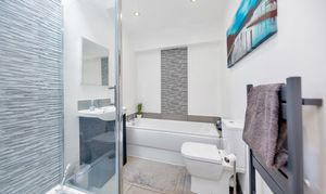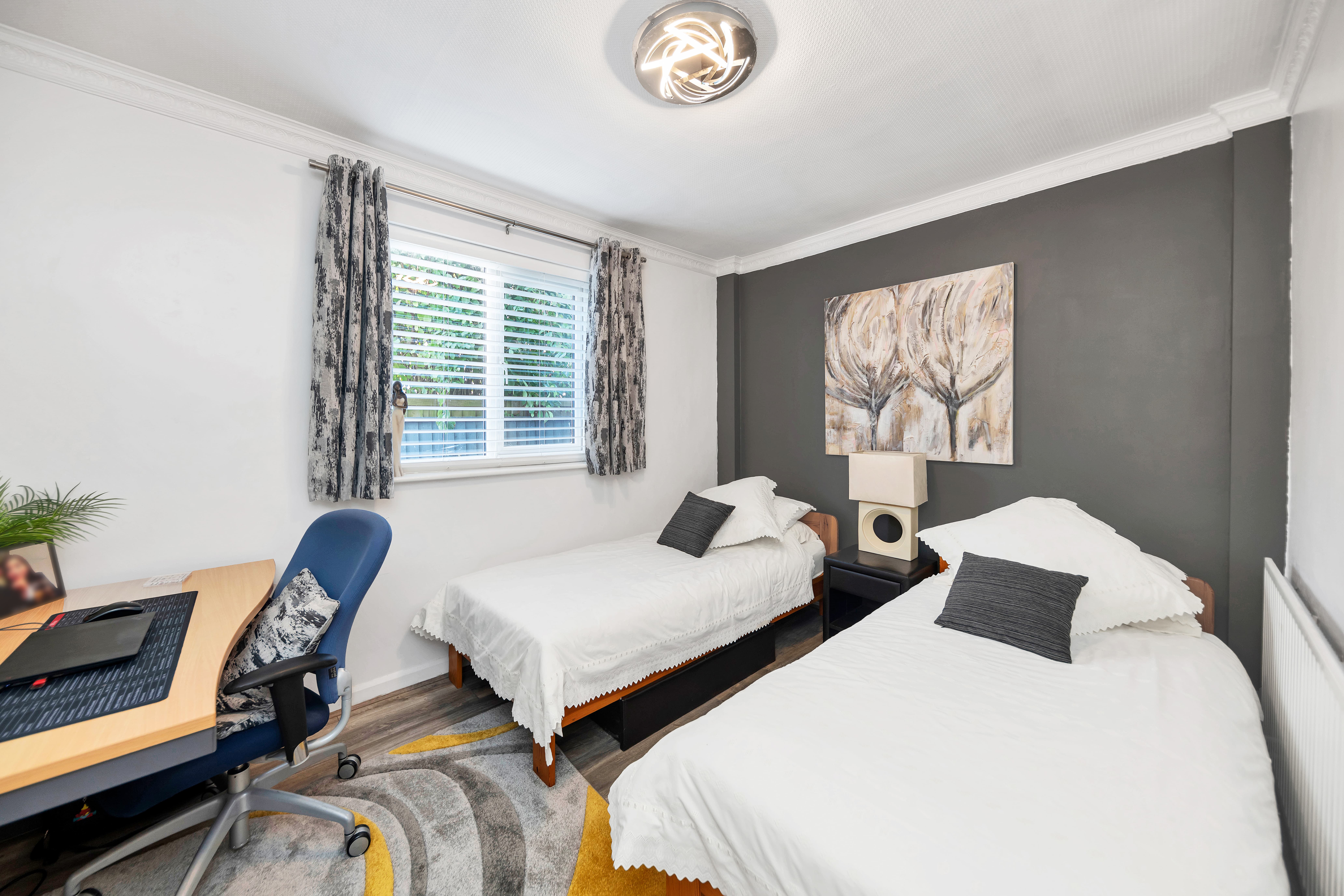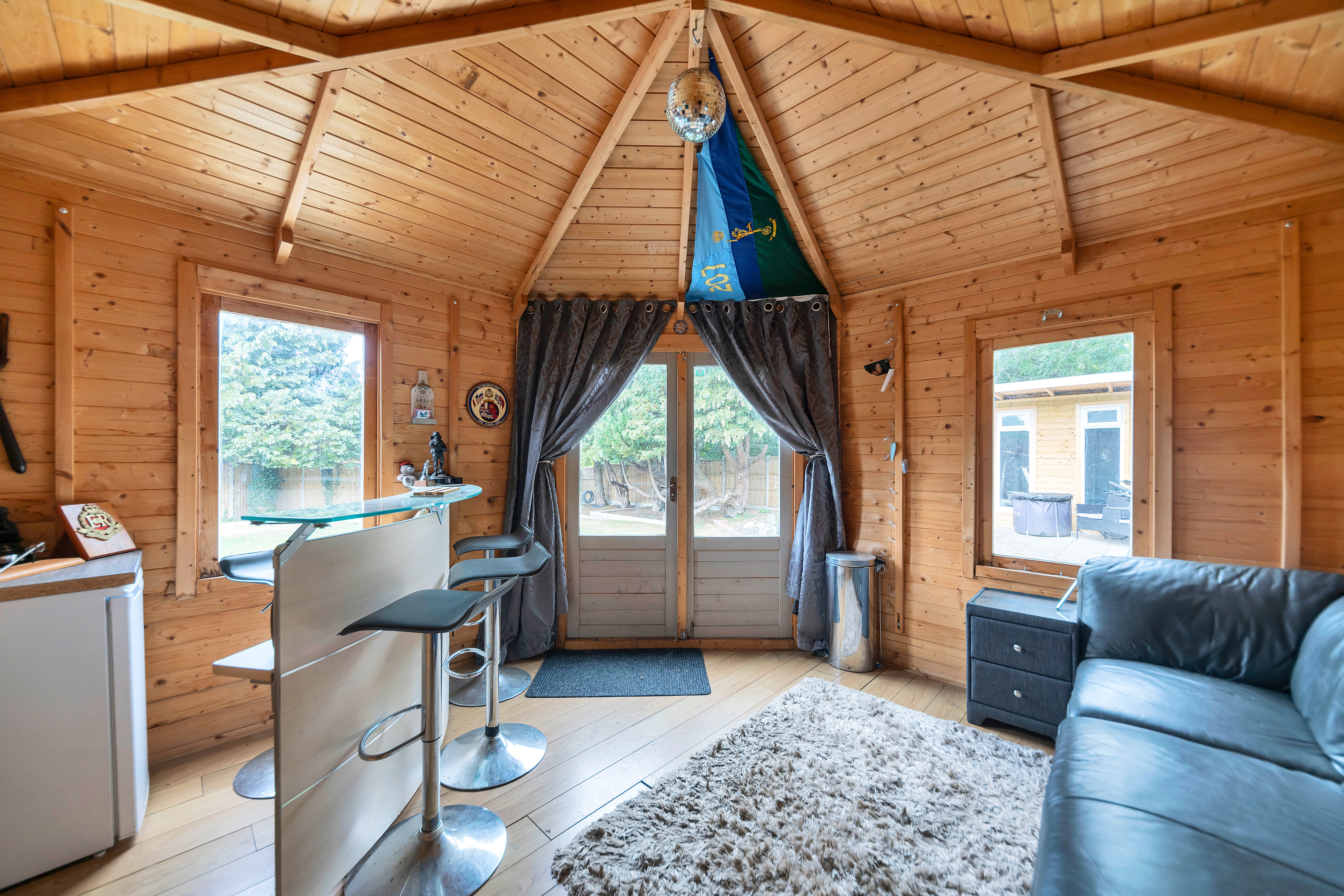 Outside, to the rear, this landscaped garden is an excellent size, fully enclosed by fencing and offering a truly stunning space to sit and relax on warmer days. It is laid to lawn, decorative stone and decking areas, providing ample space for garden furniture, cooking meals al fresco, and entertaining guests. There are beautifully tended raised borders and beds, brimming with plants, mature trees and shrubs, and plenty of space for pots. There is also access to 2 large outbuildings, currently being utilised as a summer house and gym, but offering new owners flexible usage depending on requirements.
