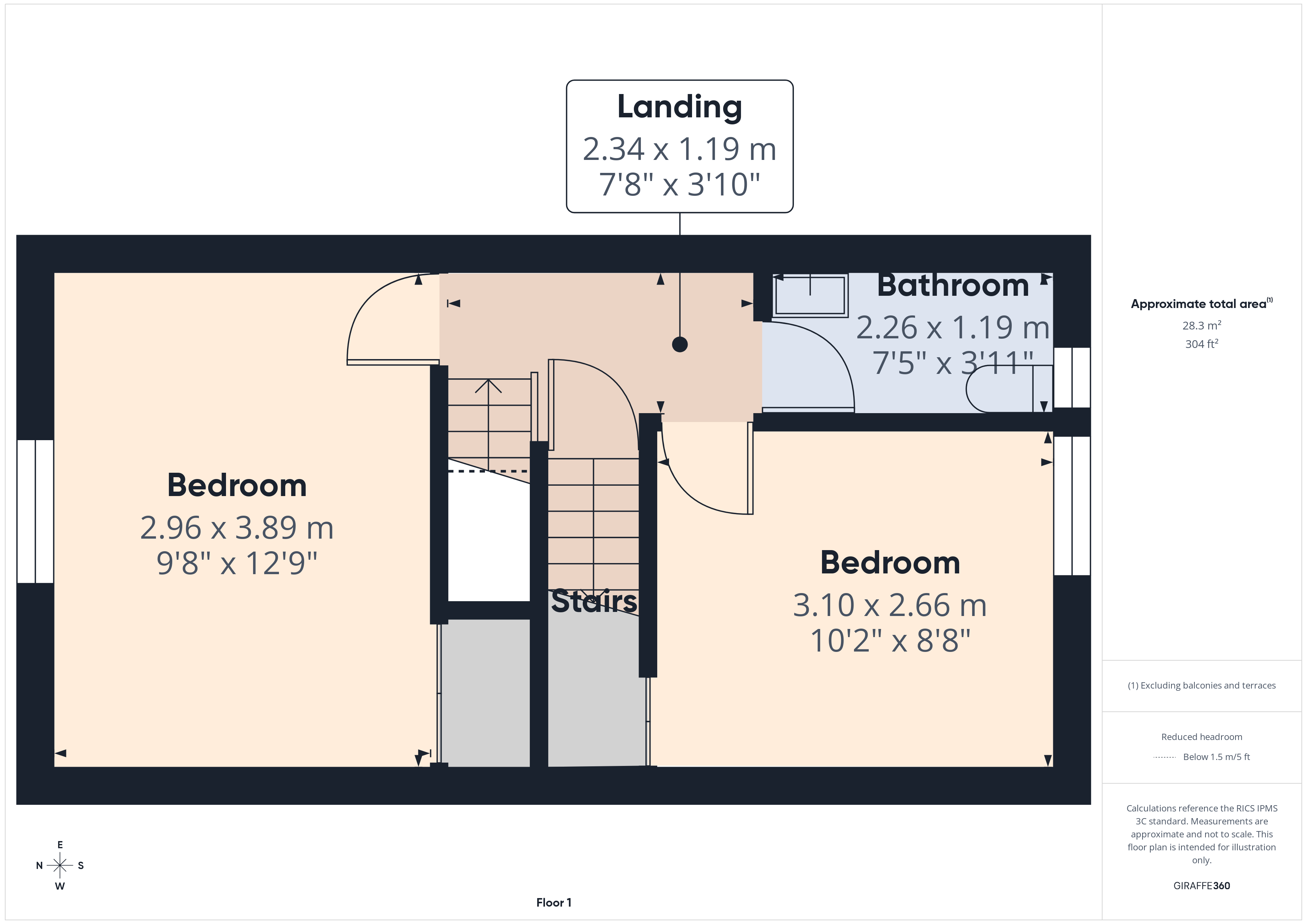 Located off the landing and having a pedestal hand wash basin and low level w.c.