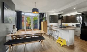 Upon entering, you’re welcomed by a contemporary family kitchen and dining space, thoughtfully designed to suit everything from busy weekday meals to relaxed weekend gatherings. The separate lounge, complemented by a charming bay window, provides a bright and comfortable retreat for quiet evenings or entertaining guests.