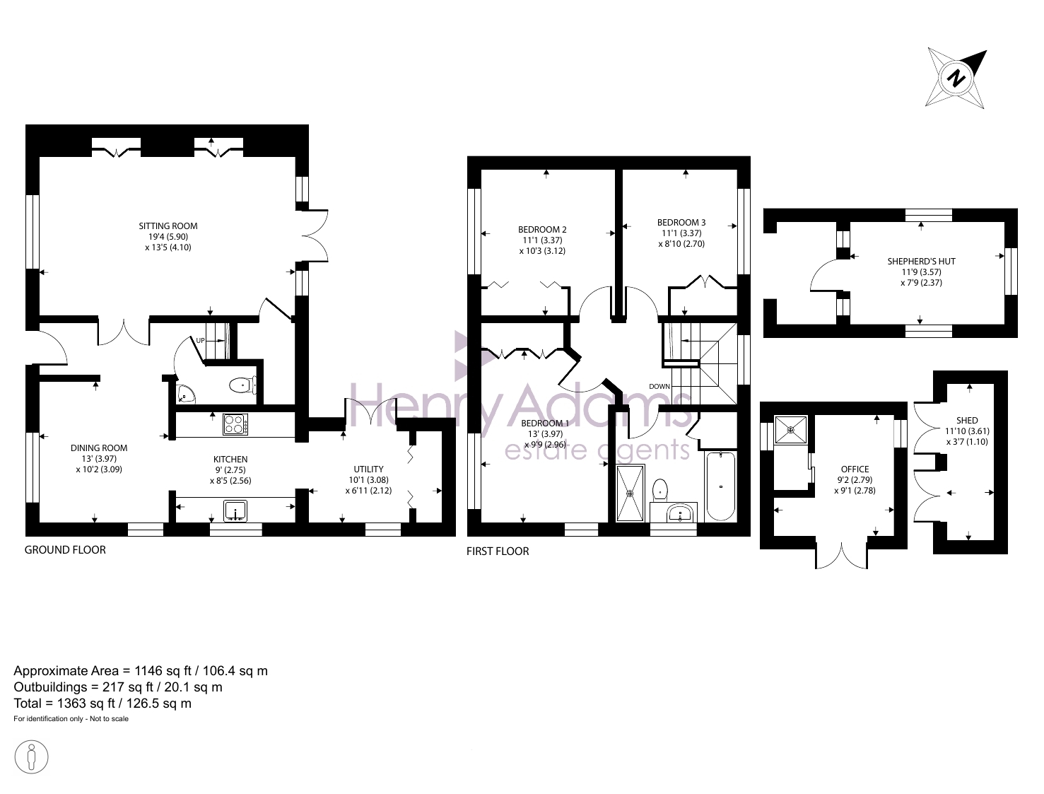 - Garden office space or additional accommodation with shower room