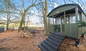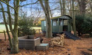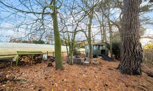 - Woodland area across lane from house with Shepherds hut, ideal space for fire pit and seating overlooking paddocks