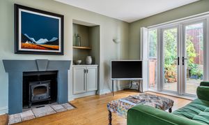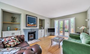- Sitting room with woodburner and French doors to patio terrace