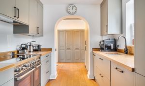 - Large utility cupboard with space for appliances and additional storage with access to garden