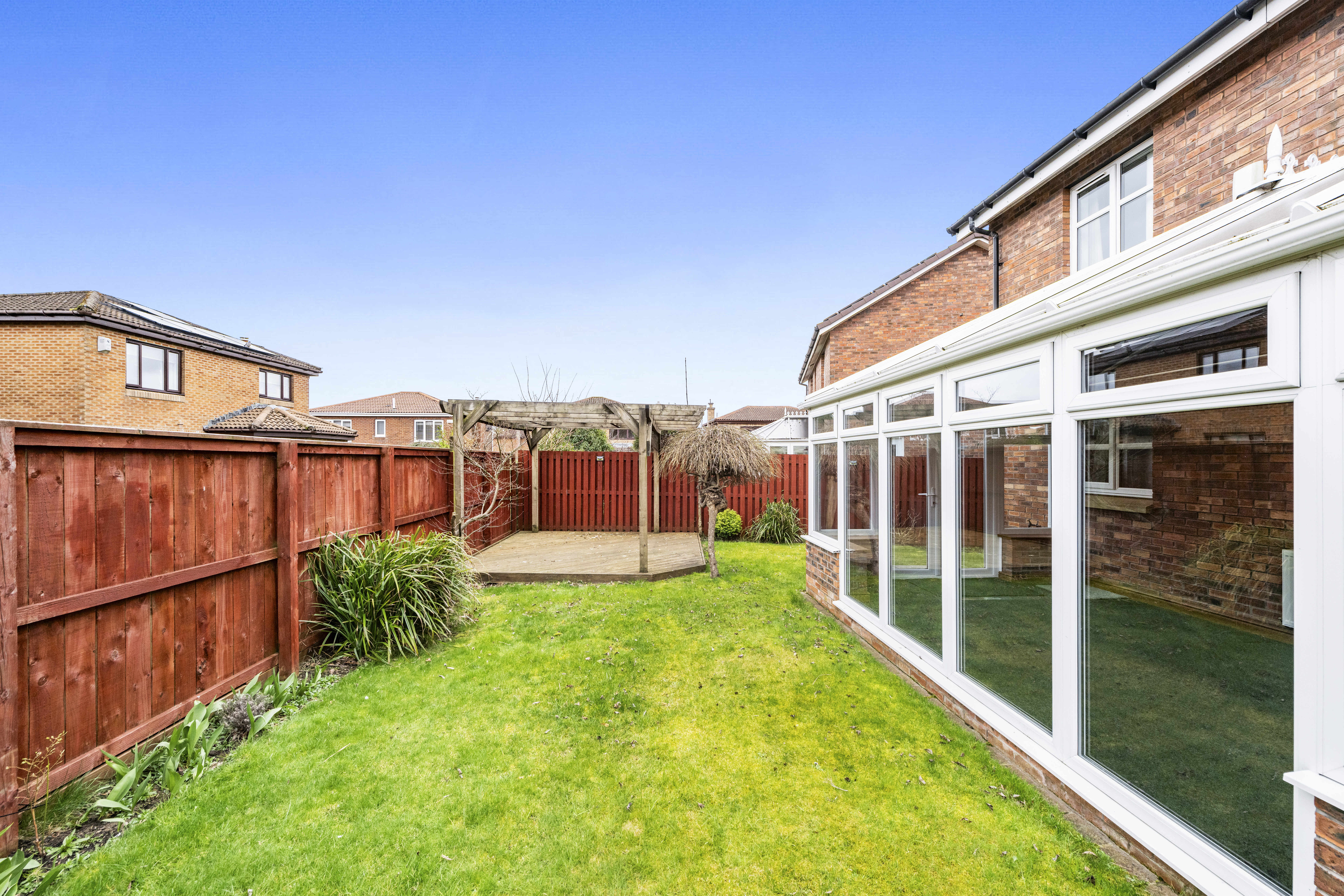 - Fully enclosed rear garden with large decked patio and pergola. Shed