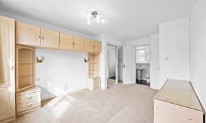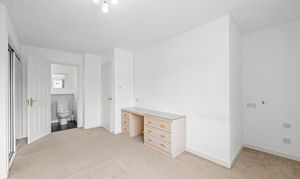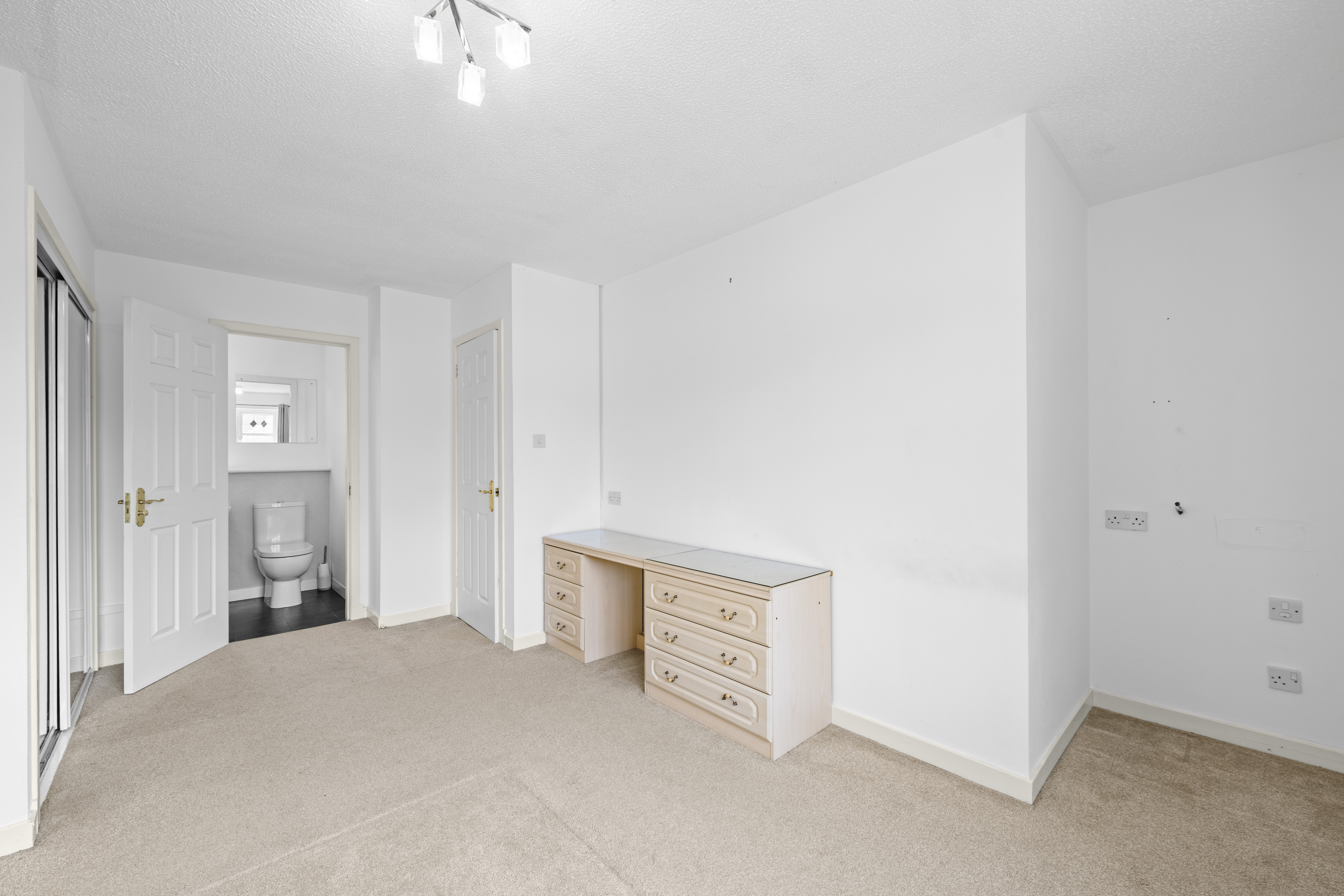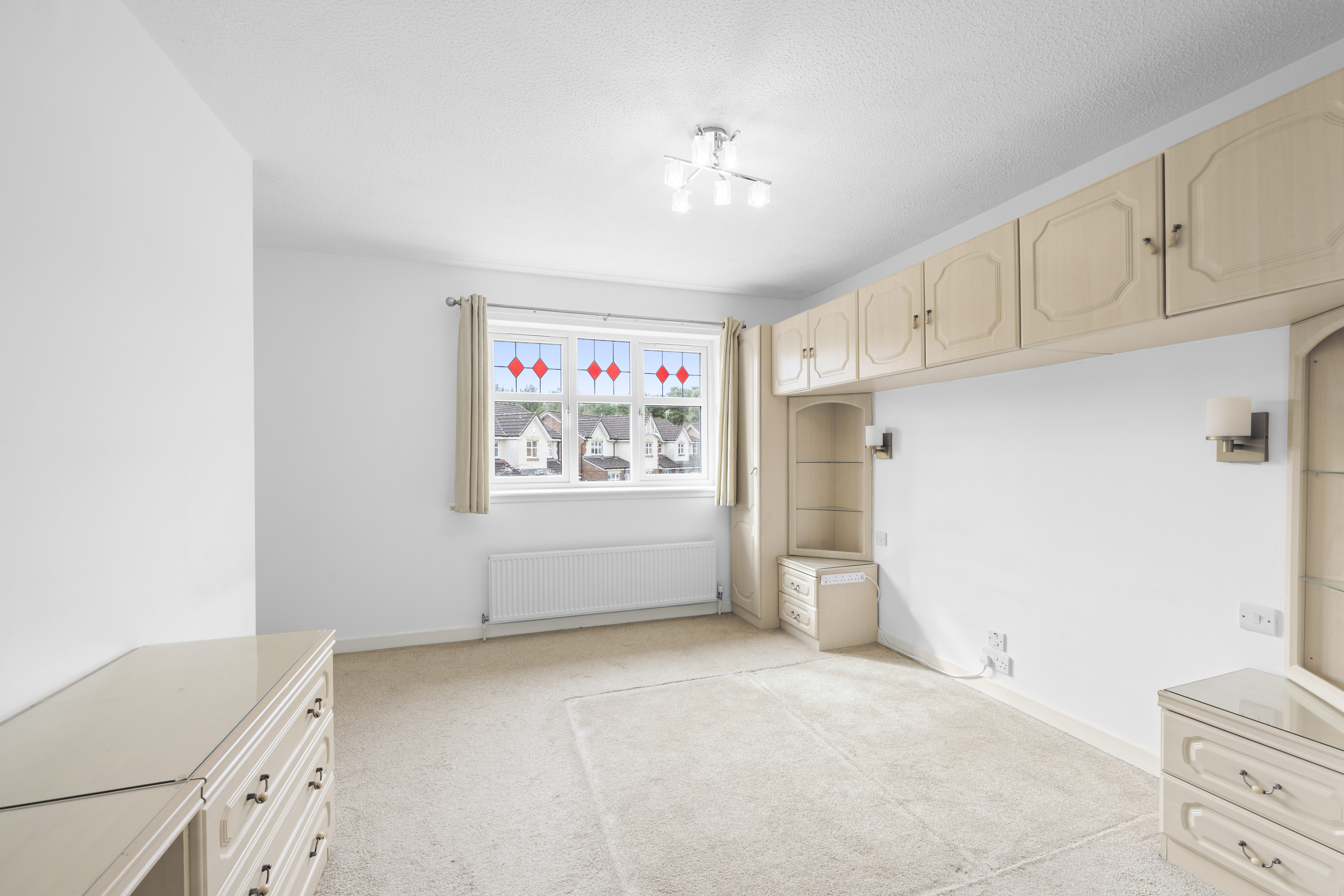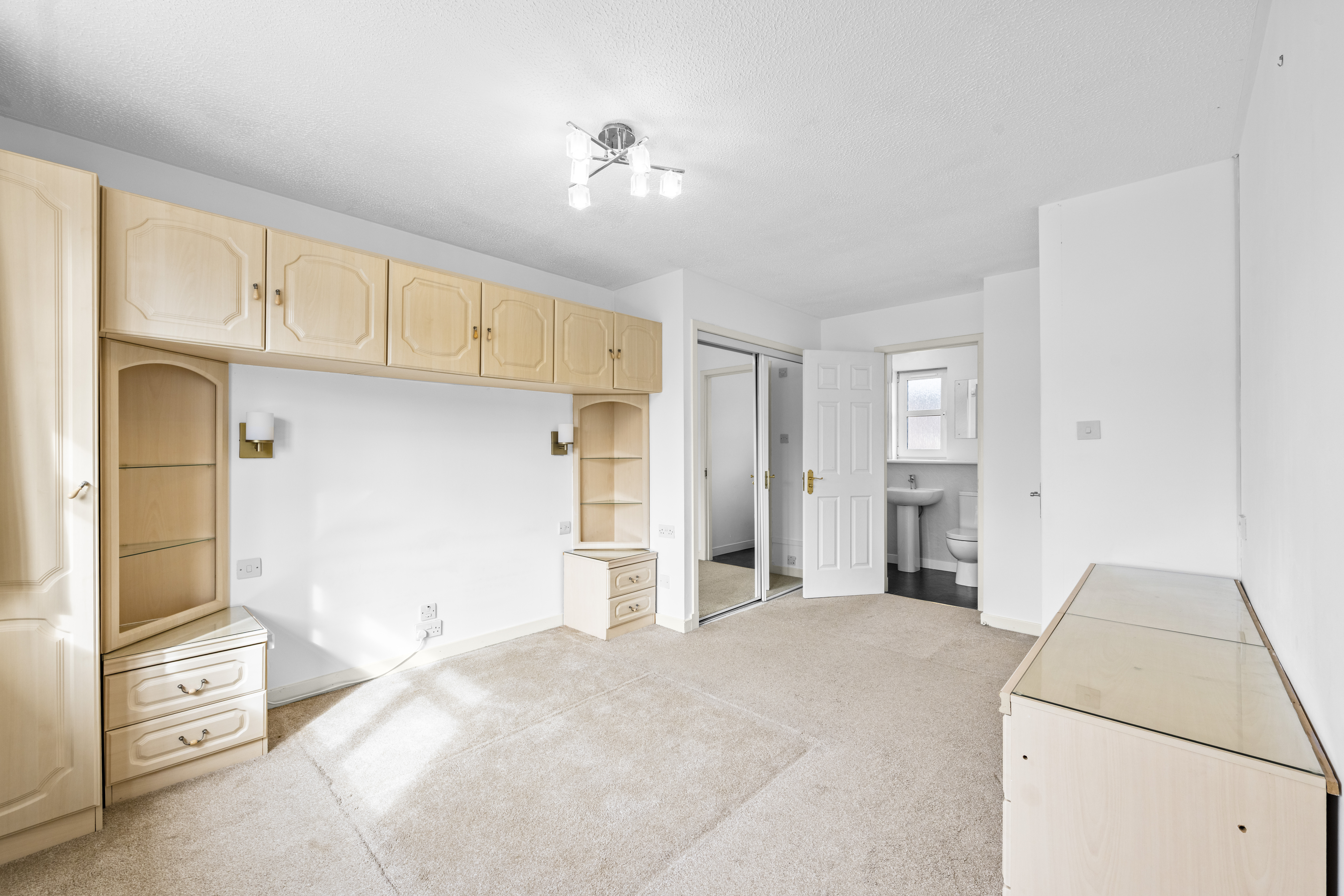 Front facing window with curtains and pole. Fitted wardrobes concealed behind sliding mirrored doors and light. Fitted bedroom furniture. Fitted carpet, radiator, 4-way spotlights.
