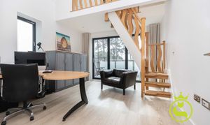 Upstairs the principal suite is a sanctuary of calm and cosiness complete with a walk-in dressing room, luxurious en-suite and private terrace. Adjacent is a further double bedroom with dressing space nestling alongside a comprehensive family bathroom. This floor is completed by a remarkable vaulted studio room, a space that could be a gym, creative retreat, office, or additional bedroom enhanced by a galleried mezzanine boasting panoramic sylvan views and a sun-soaked balcony – a fantastic place to enjoy your morning coffee alone or with company.