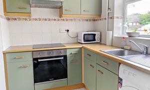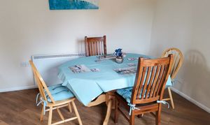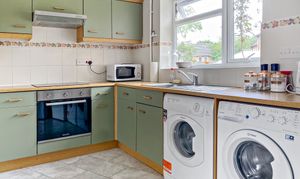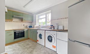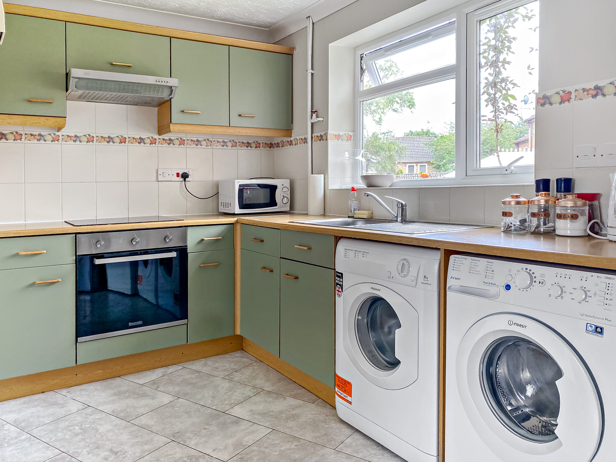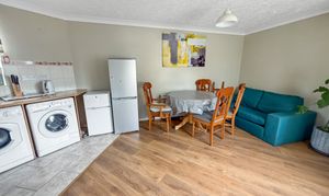 The property is arranged around a bright open-plan kitchen and dining area, creating a sociable and functional space for everyday living. The kitchen provides ample worktop space and storage, with room for appliances and dining furniture.