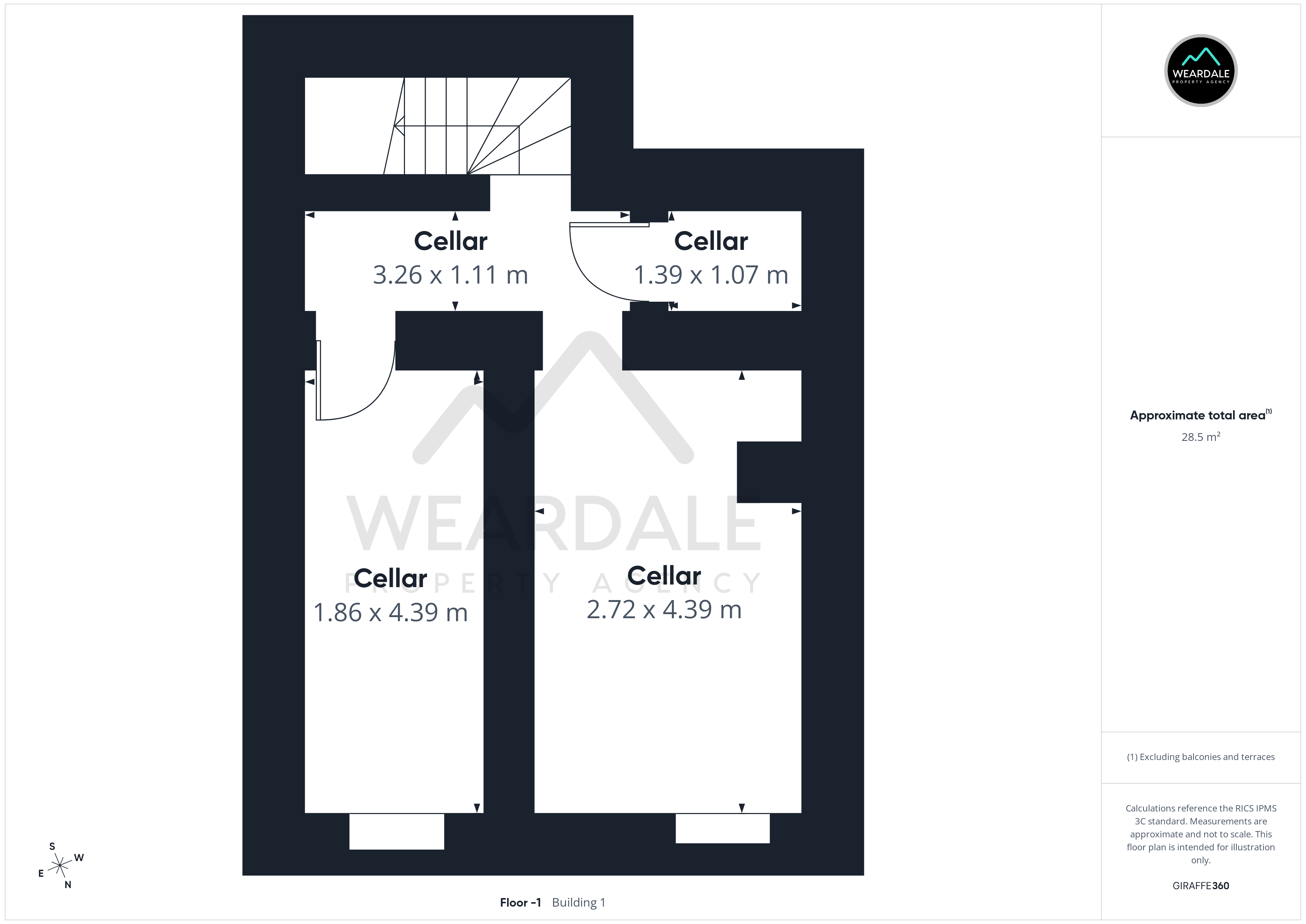 - Positioned to the middle of the property and accessed from the rear hallway - Spacious cellar split in to 4 sections (3.26m x 1.11m) + (1.86m x 4.39m) + (1.39m x 1.07m) + (2.72m x 4.39m) - Could be used as a workshop or as additional storage space - Ceiling light fittings