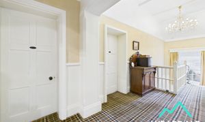- Positioned centrally within the ground floor, accessed from the entrance porch, and providing onward internal access to the dining room, lounge, garden room, rear hallway, bar, rear reception room, and the staircase rising to the first floor - Carpeted - Three ceiling light fittings - Two radiators