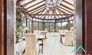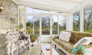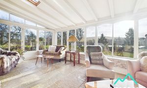 - Positioned to the front and Eastern side of the property, accessed via wooden double doors from the dining room, and providing external access to the property’s gardens - Flagstone flooring with underfloor heating - Built circa 8 years ago - Triple aspect, with wooden framed double-glazed windows to the Northern, Eastern, and Southern sides, providing beautiful views of the property’s gardens and the surrounding hillsides - Exposed stone wall to the western side - Ceiling light fitting and wall mounted light fittings - Ample space for dining/conservatory furniture
