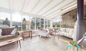 - Positioned to the rear of the property, accessed from the lounge and main hallway, and providing external access to the property’s gardens via a wooden door positioned to the Eastern side of the room - Flagstone flooring with underfloor heating - Built circa 7 years ago - Triple aspect, with wooden framed windows to the Eastern, Southern, and Western sides, providing stunning views of the surrounding hillsides - Two roof light windows to the Southern aspect - Exposed stone walls to the Northern and Western sides - Wood burning stove, providing the focal point of the room - Ample space for conservatory / lounge furniture