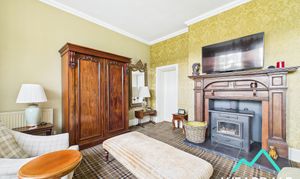- Positioned to the rear of the property, accessed from the main hallway and ground floor bathroom - Well-proportioned room that could be used as a reception room or additional bedroom - Two wooden framed multi-paned sash windows to the Southern aspect, providing beautiful views of the hillsides to the South - Carpeted - Multi-fuel burner set on a tiled hearth with wooden surround and mantle - Central ceiling light fitting - Two radiators - Ample space for free-standing furniture