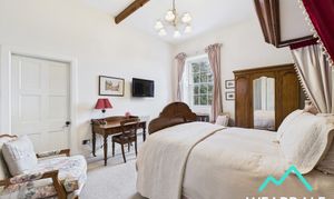 - Positioned to the front of the property and accessed from the landing - Large double room, with En-suite - Wooden framed multi-paned sash window to the Northern aspect, looking over the front of the property - Carpeted - Exposed wooden ceiling beams - Feature fireplace with wooden mantle - Central ceiling light fitting - Radiator - Ample space for free-standing storage furniture