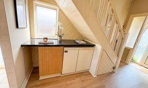 The kitchen is well-appointed with ample storage and workspace, catering to the needs of a busy household.