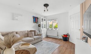 As you step inside, you’re welcomed by a small entrance area, perfectly designed for shoes and coats, setting the tone for a well-thought-out home. From here, you’re drawn straight into the spacious and bright living room, where a large front-facing window floods the space with natural light. The room also benefits from a generous under-stairs storage area, ensuring everything has its place without compromising on style or comfort.
