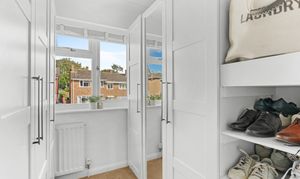 Flowing through from the living room, the kitchen diner is a real highlight. Open and airy, it provides plenty of space for both cooking and dining, with sleek finishes that make it as practical as it is inviting. Double doors open directly onto the garden, creating a seamless connection between indoors and out, perfect for entertaining or enjoying relaxed family meals.