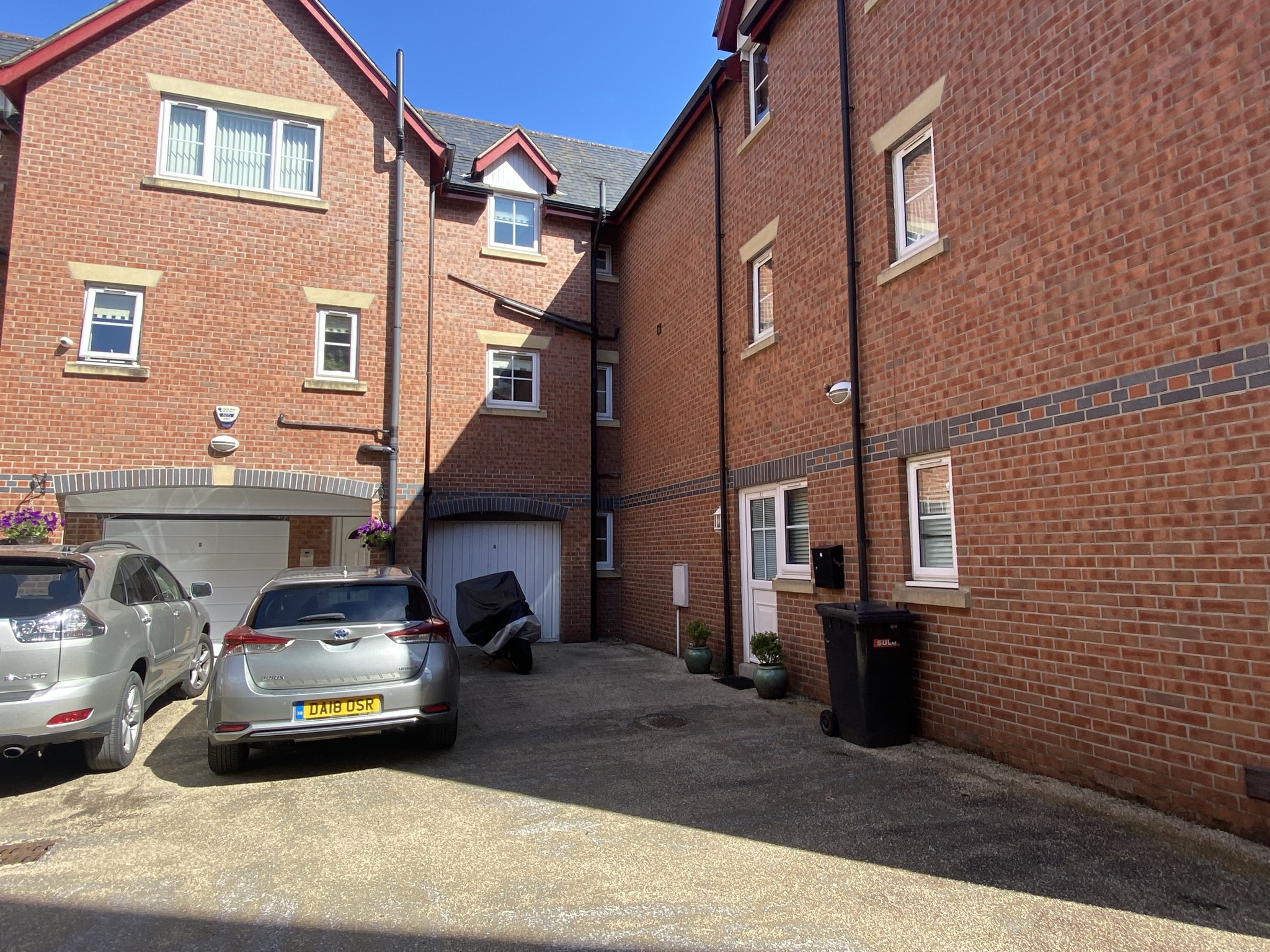 Window to the side elevation. Up and over garage door to the side elevation accessed via the developments rear court yard.