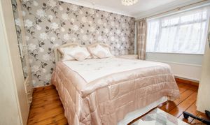 A large double bedroom with polished exposed floor boards and a uPVC double glazed window to the front.