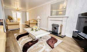 A large, comfortable and relaxing room that has feature fireplace with a fitted wood burner. A uPVC double glazed window overlooks the front garden, a door leads into the family room and a pair of French doors open into the dining room.
