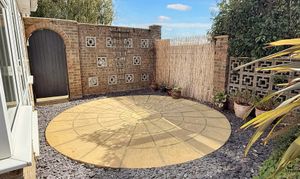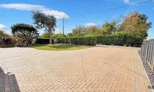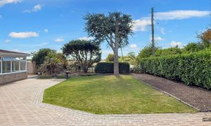 The front garden has a block paved drive and parking area with enough space for multiple vehicles and a caravan or motorhome. There is a lawned garden with a variety of plants and shrubs set to decorative borders. There is garage access and a gated footpath that leads to the rear garden. To the side, there is a feature circular patio and further gated access to the rear garden