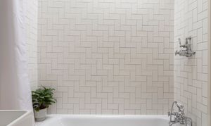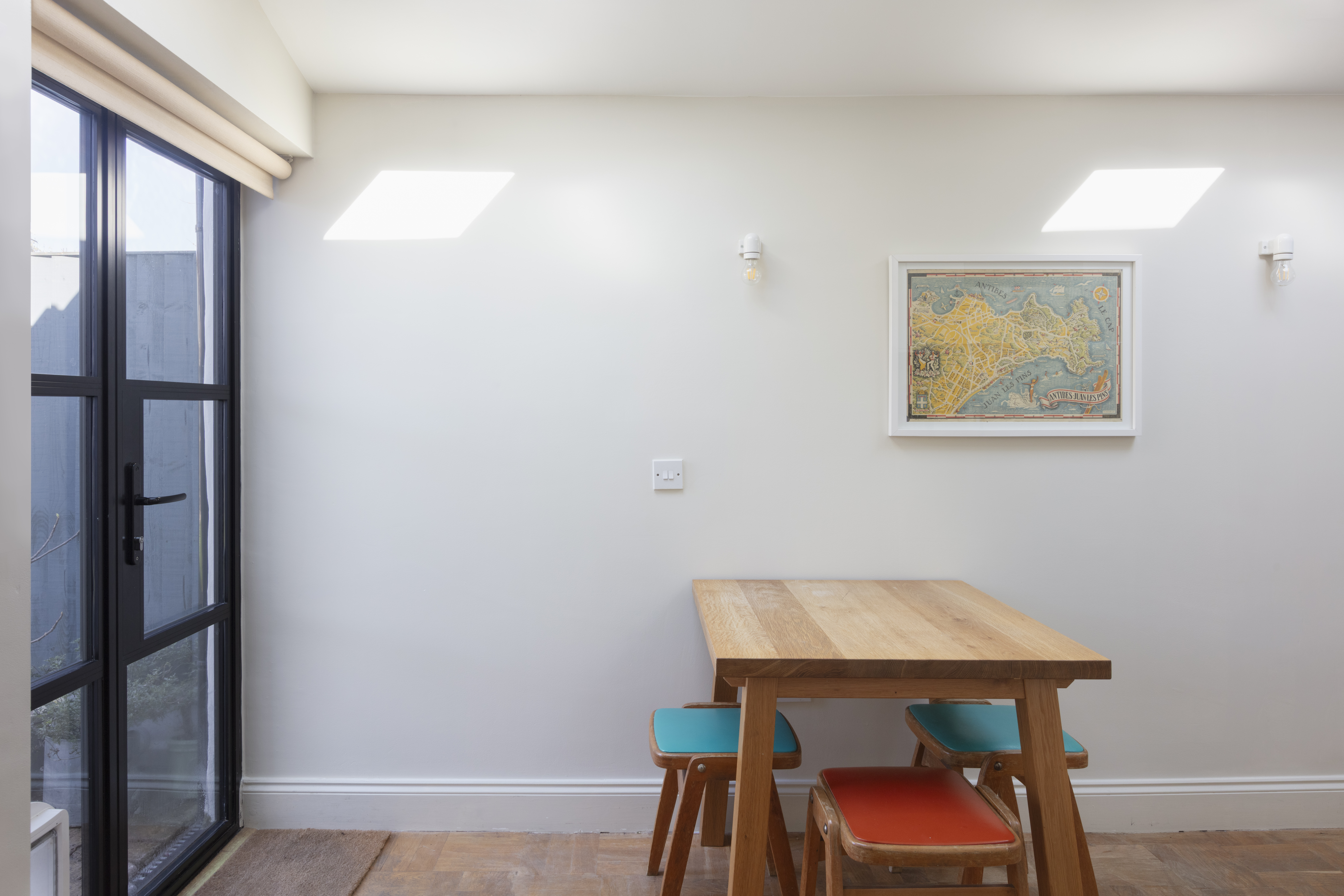 - Crittall-style doors and encaustic floor tiles