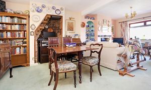 From the inviting entrance hall a door leads directly through to the sitting room, which is a lovely bright room with a window to the front, chimney breast with inset open fire and fitted shelving to either side. The room then opens out into a well-proportioned dining area, again a lovely bright room, which has an exposed brick fireplace to one side, a window through to the conservatory/day room, along with a turned staircase to one side leading up to the first floor.