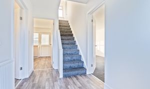 You enter the property into a spacious hallway, which provides access to the main living areas, stairs to the first floor and a useful utility/storage area on the left. To the right is the bright and spacious lounge, tastefully finished in a modern neutral décor, with both front and rear facing windows allowing natural light to flood the room and creating a warm and welcoming atmosphere. The ground floor has been thoughtfully updated throughout, with new carpets and flooring enhancing the fresh, contemporary feel. To the rear of the ground floor is the newly fitted, modern kitchen, featuring a range of contemporary floor and wall units and ample worktop space, with room for a dining table and chairs, making it a sociable and practical space for everyday living. From the kitchen, double doors lead through to the conservatory, providing an additional seating or dining area and offering pleasant views over the rear garden.