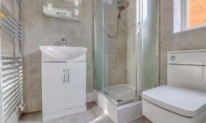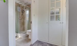Moving to the first floor, there is a landing with doors off to a fantastic master bedroom suite with a dressing area with fitted wardrobes and a contemporary en-suite shower room off. There are two further generous bedrooms and a family bathroom which is fitted with a panelled bath with shower over, low flush WC and a pedestal wash hand basin.
