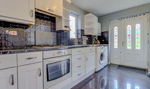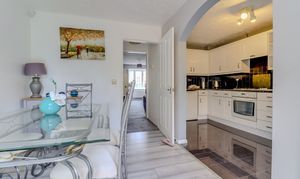 The internal accommodation comprises in brief; a welcoming entrance hall with a staircase rising to the first floor landing and a door leads off to a good sized lounge with a feature fireplace and a walk in box bay window to the front. A door leads through to the semi-open plan kitchen-diner with the kitchen area being fitted with a range of Shaker style wall and base units with contrasting work surfaces and integrated oven and hob with space for further appliances and a UPVC double glazed door leading out to the gardens. The dining area has ample space for a large dining table and there are French doors opening out to the gardens. Completing the ground floor accommodation is a downstairs WC.