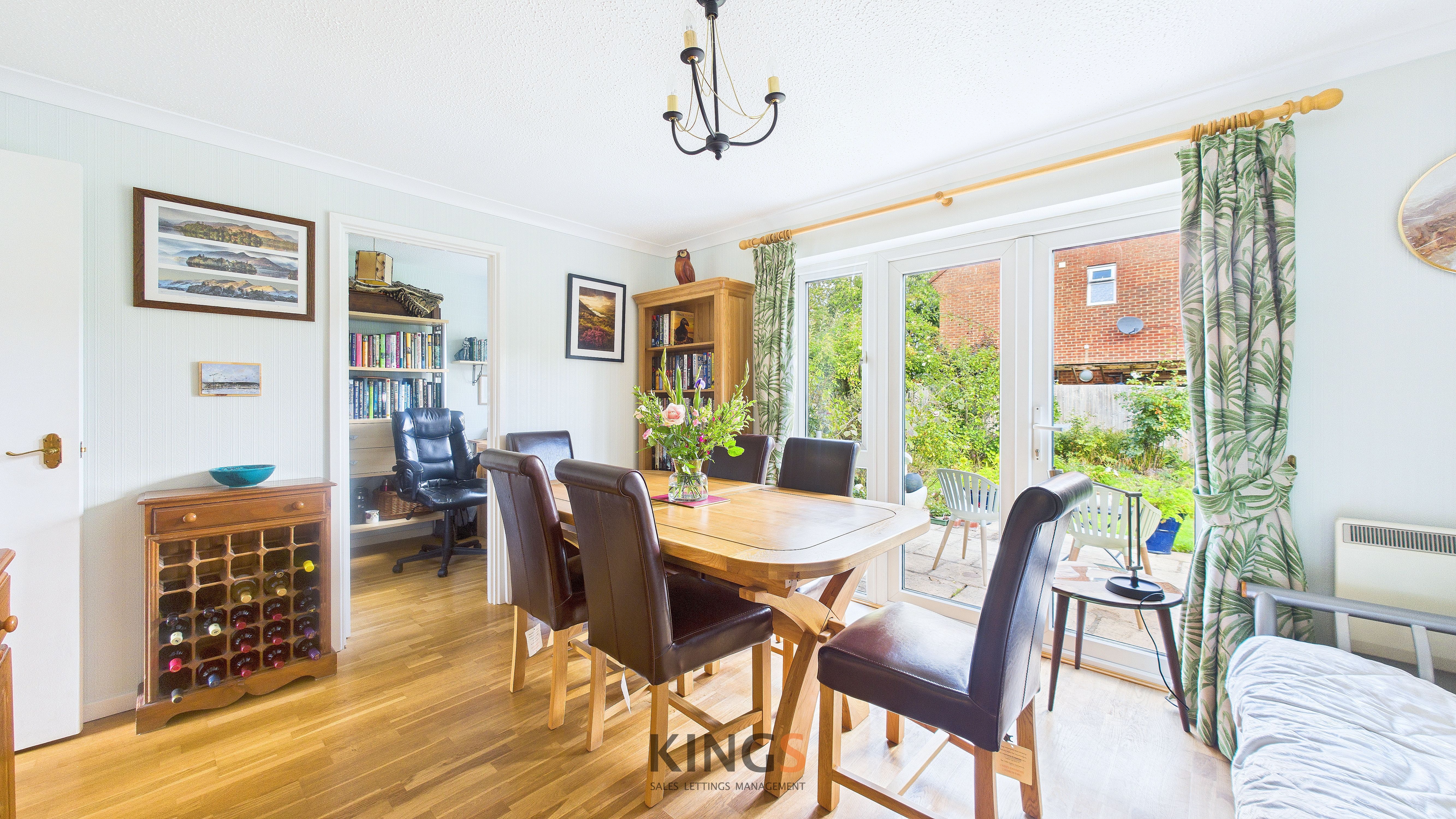 A four bedroom detached family home situated in a popular cul de sac with in minutes walk of all local amenities, shops and mainline railway station. The property benefits from cloakroom, fitted kitchen, lounge, dining room, study, downstairs shower room, four double bedrooms, family bathroom, gas warm air central heating, double glazing, larger than average ‘L’ shaped garden, single garage, driveway with off street parking for two cars.