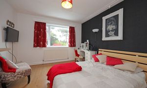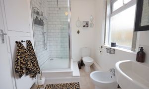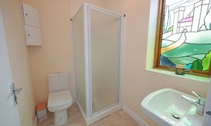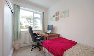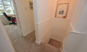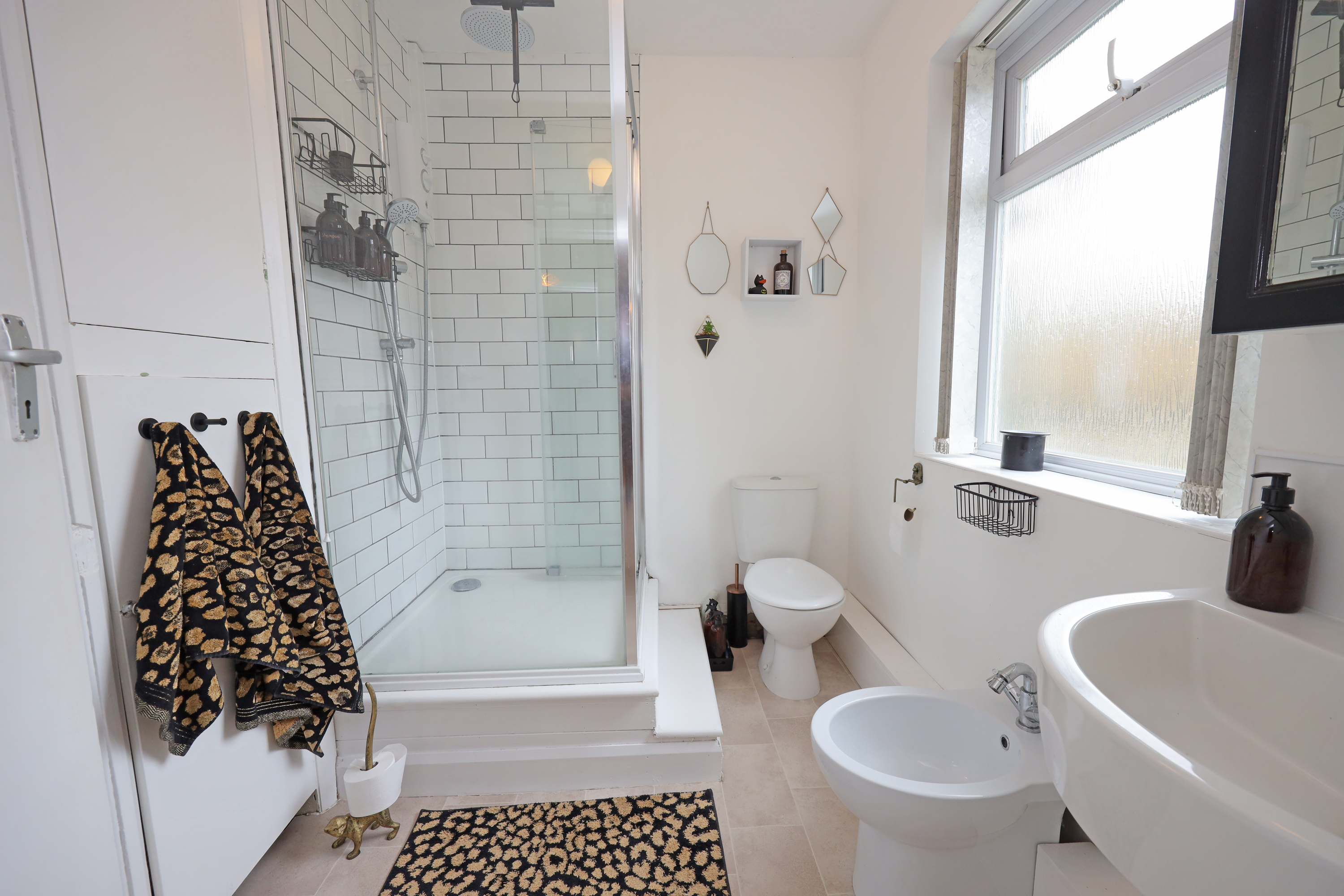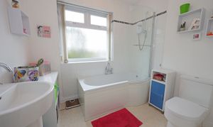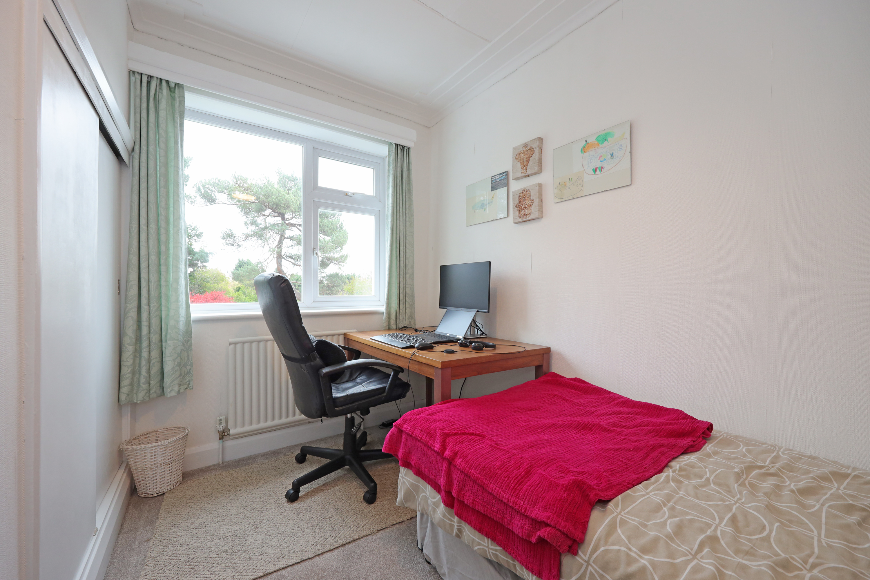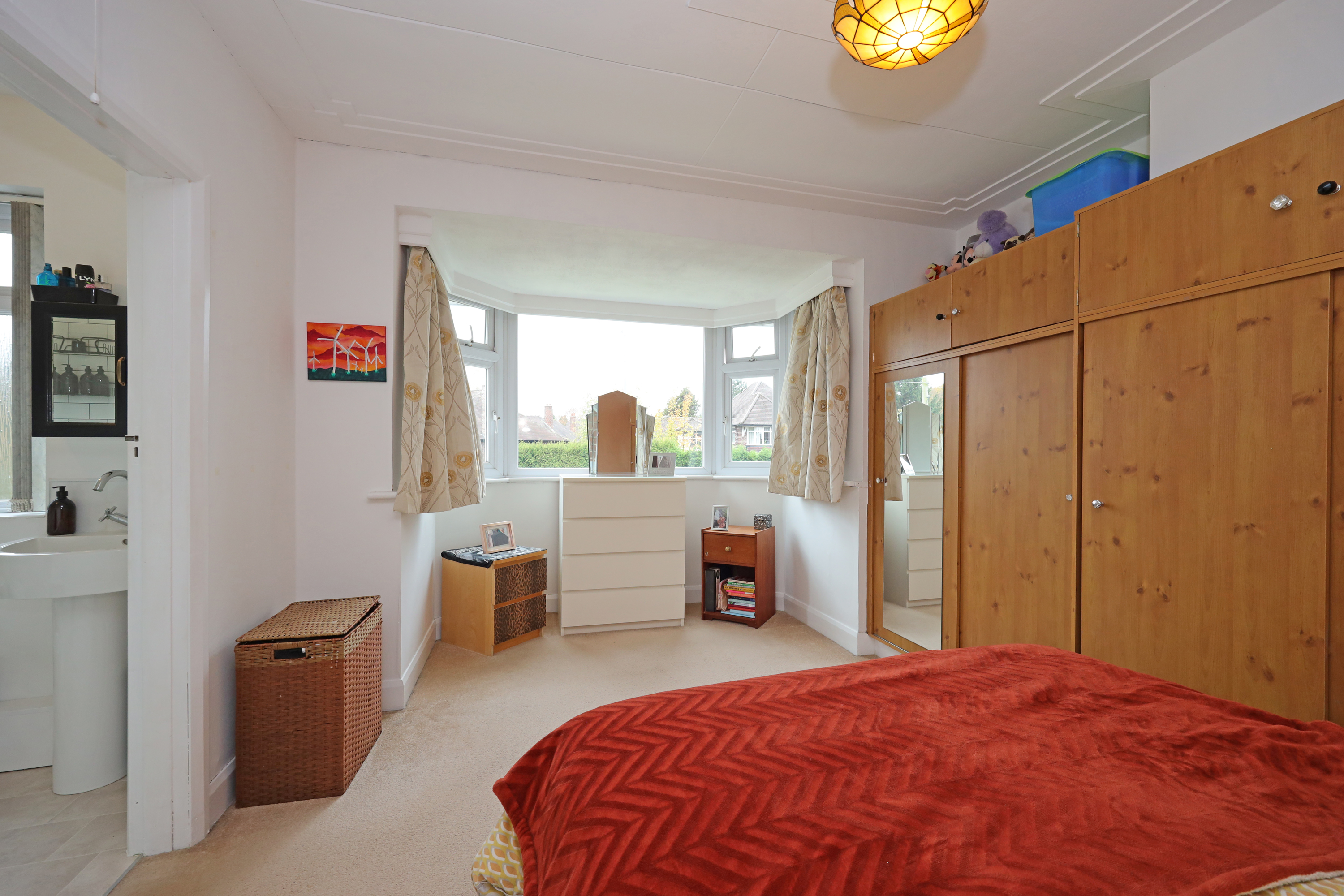The first floor provides L shaped landing area with wardrobe storage. The master bedroom has a repeat large bay window overlooking the front with fitted wardrobe/cupboard units and decorative art deco ceiling. An ensuite shower room is situated off the bedroom with a large step in shower cubicle having electric power shower, WC, wash basin and bidet. A second principal bedroom with built wardrobe has loft access with pulldown ladder to roof void, further decorative ceiling and a large picture window overlooking the rear garden and open aspect beyond. The smallest bedroom which is large enough to accommodate a family member (currently used as a study) also enjoys views over the rear garden with built in wardrobe and further decorative ceiling. The corridor landing continues to the first floor extended area providing a third double bedroom with dual aspect outlook to front and side and a further ensuite shower room to include corner tile shower cubicle with electric shower, wash basin and WC. In addition there is a separate spacious family bathroom incorporating a three-piece suite with electric shower and splash screen over bath.