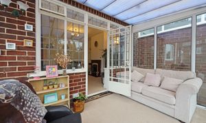 Enclosed entrance porch opening to reception hallway with return staircase having under stair storage and original panelling to first floor. The two main reception rooms consist of a large bay fronted dining/sitting room with tiled fireplace and decorative art deco ceiling. The second reception living room also has a has an original decorative ceiling with freestanding electric fire/surround and original leaded glazed French doors/side panels opening to a UPVC conservatory which overlooks the garden with patio door access. The breakfast kitchen comprises of an enamel sink set within work tops that extend to breakfast bar area with a range of base and wall units and a decorative tiled floor. There is space for various freestanding appliances, including plumbing for dishwasher and a gas cooker point. Additionally, there are feature internal wall store cupboards and a large window enjoys views over the rear garden. From the kitchen a side porch gives access to a tiled cloakroom/WC and separate store/drying room with radiator. Off the side porch is a full depth lean to/utility area with space and provision for further white goods including plumbing for washing facilities. There is also external access to both the front and rear.