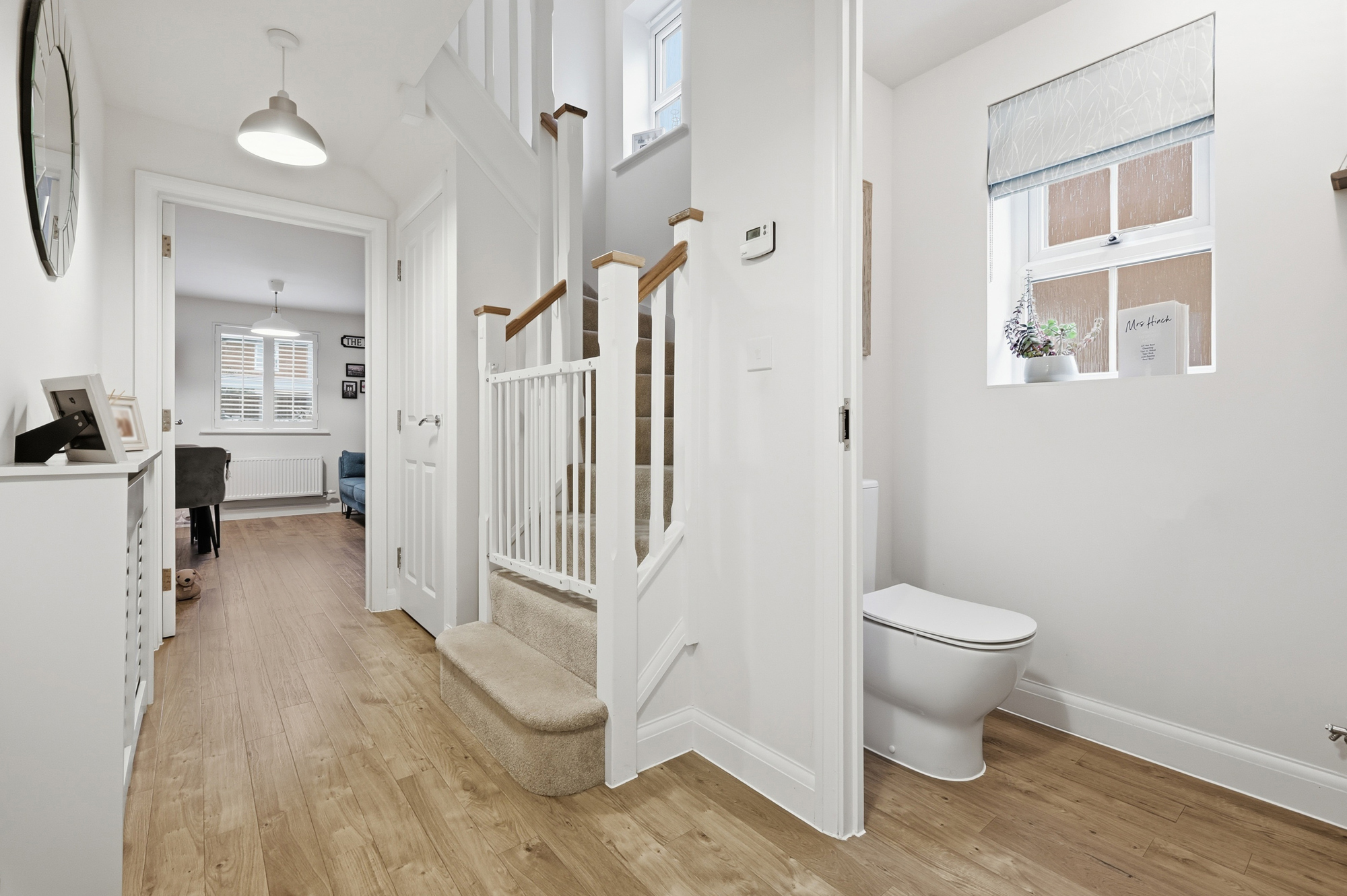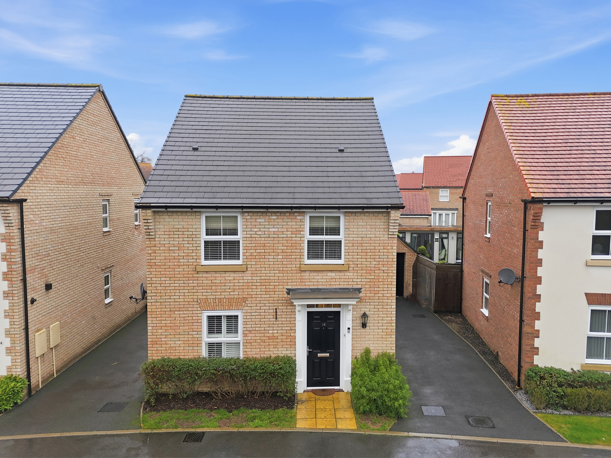 The ground floor comprises a welcoming living room, a convenient WC, and a spacious kitchen/dining/family room with large utility cupboard. To the first floor, the generous main bedroom features an en-suite shower room and fitted wardrobes, complemented by three further bedrooms and a immaculate family bathroom.