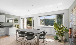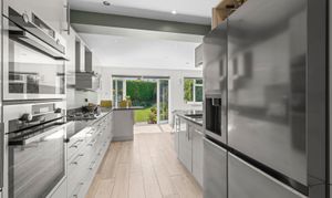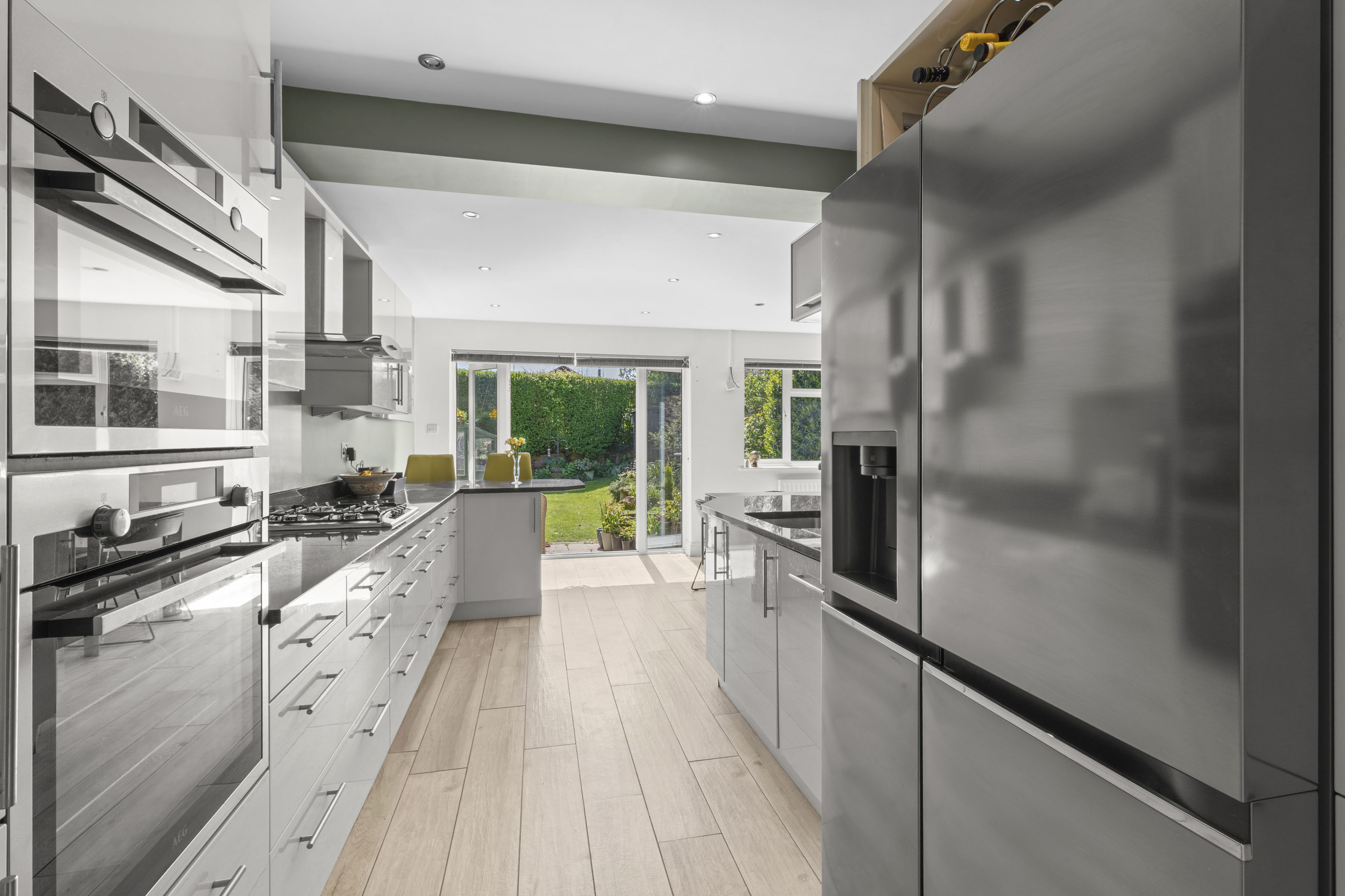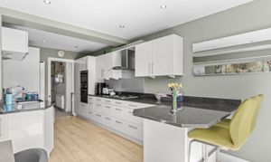 - Hub of the home modern open plan kitchen/breakfast/dining with integrated appliances and patio doors to rear