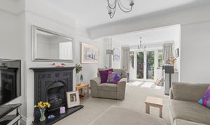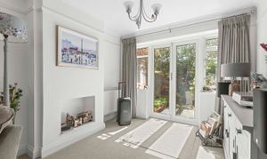 - Huge double aspect, bay fronted sitting room with patio doors to garden and beautiful period feature fire and surround