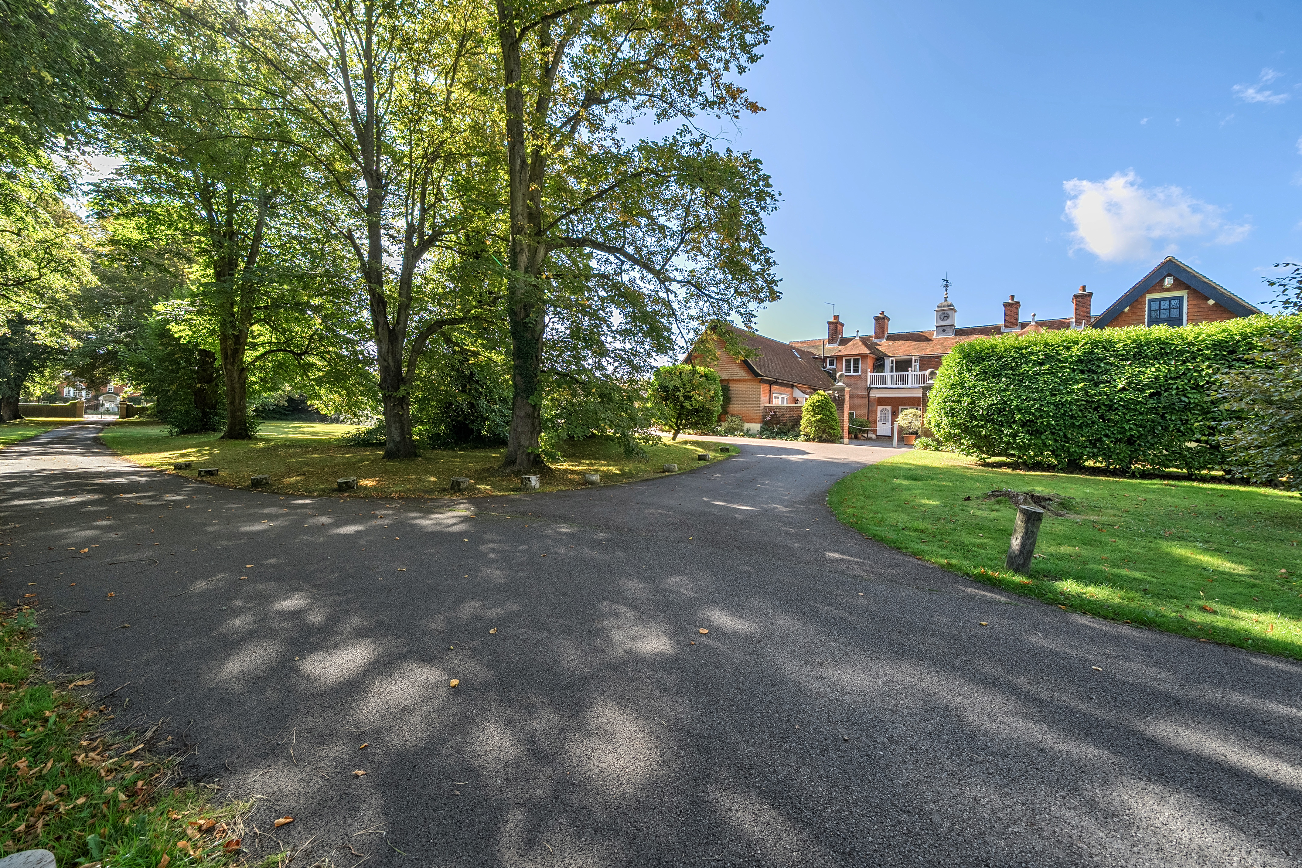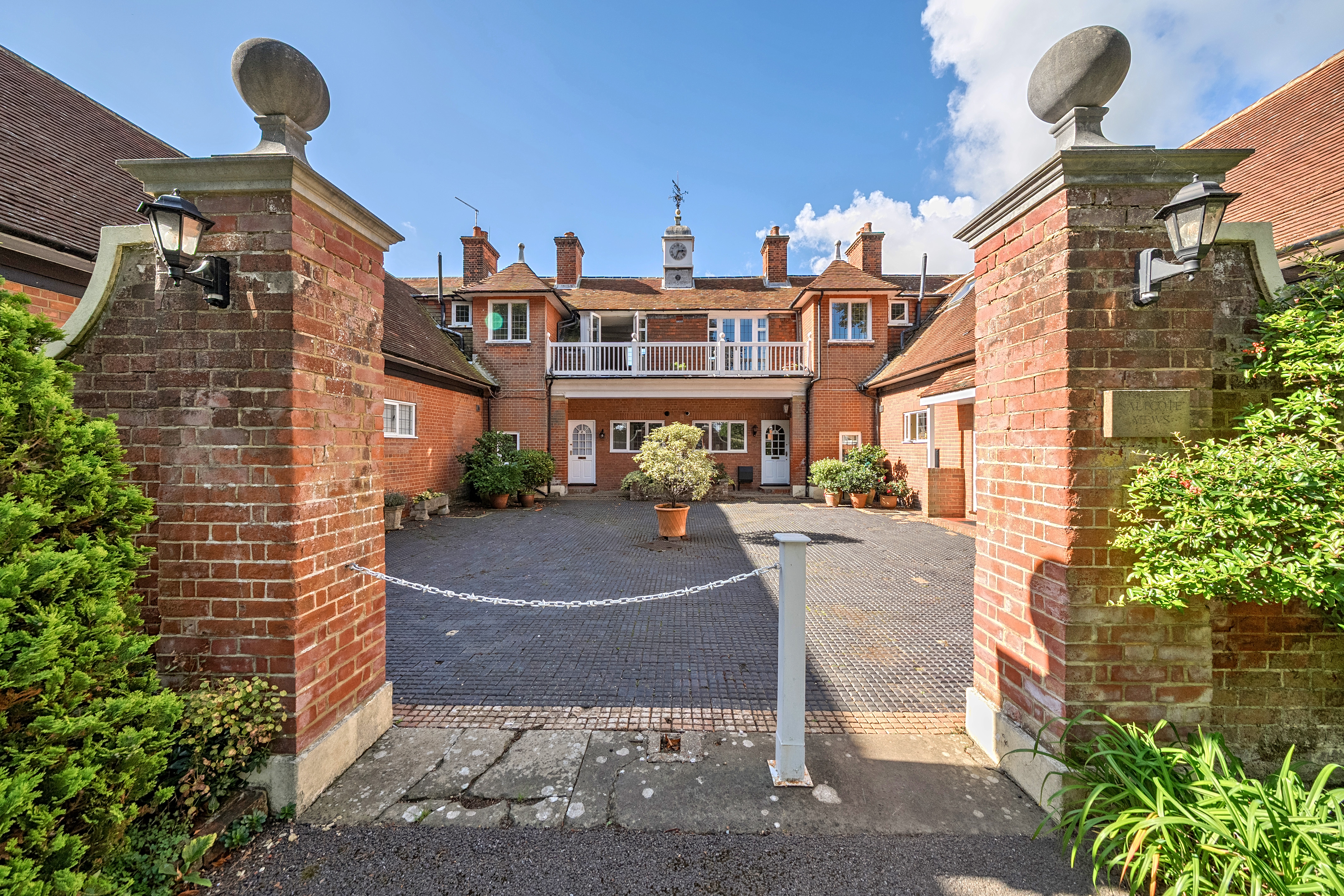 A communal courtyard to the front of the property with further communal gardens surrounding.
