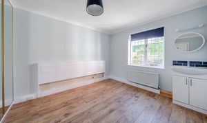 Wooden flooring, double glazed window to rear overlooking the private garden, sink with storage below, fitted wardrobes with hanging rail and shelving, radiator.