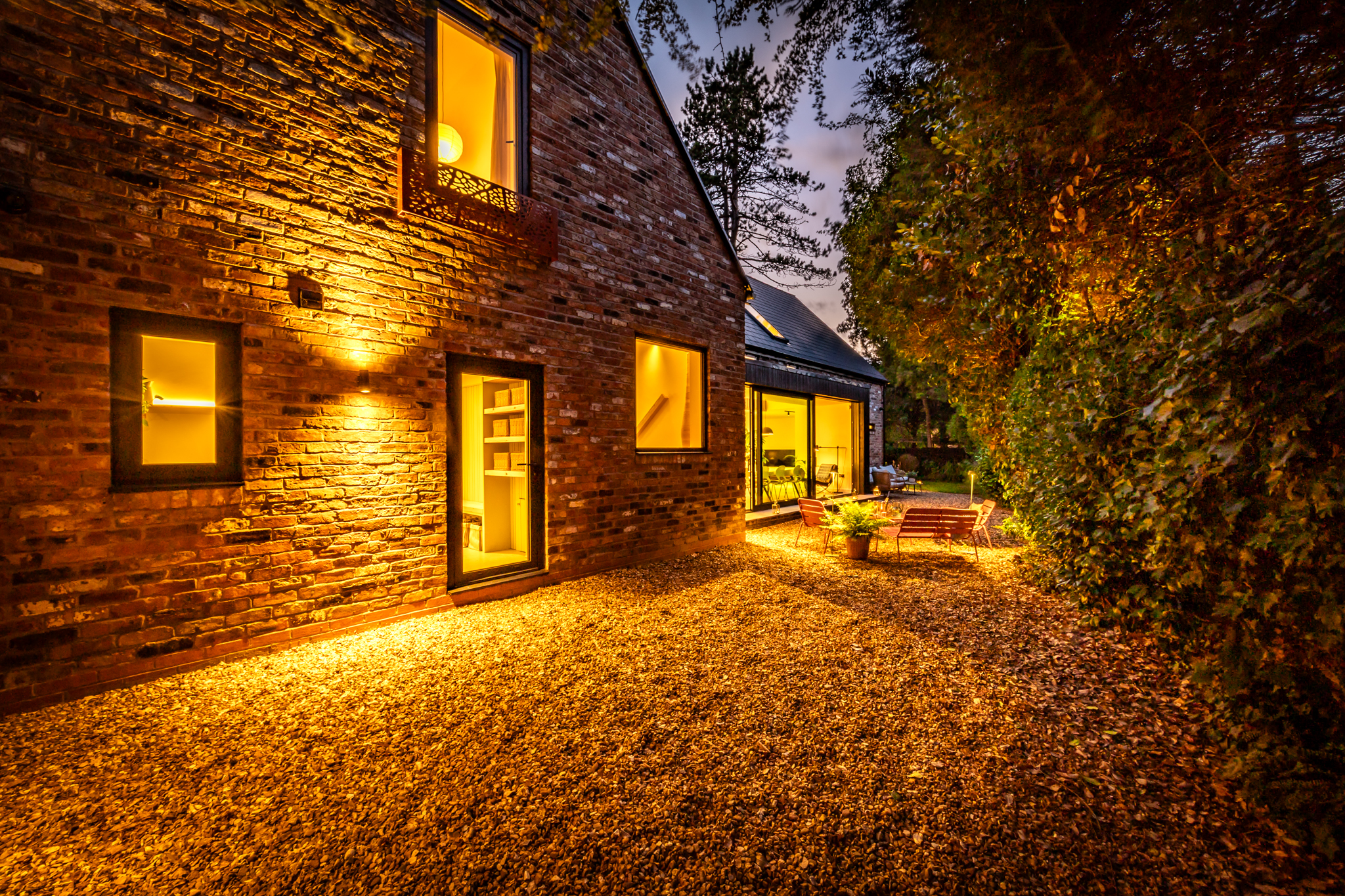 The architect reflects on the design: “The house retains the footprint of the original 1985 Cheshire brick bungalow, with only a modest extension to the dining area. The Cheshire brick creates a timeless quality that is beautifully complemented by the black timber cladding in the storm porch and the exterior of the snug. By lifting the roofline, we unlocked a light-filled second level. The windows were positioned to follow the movement of the sun, so light dances through the spaces from morning to evening, transforming the atmosphere as the day unfolds. ”