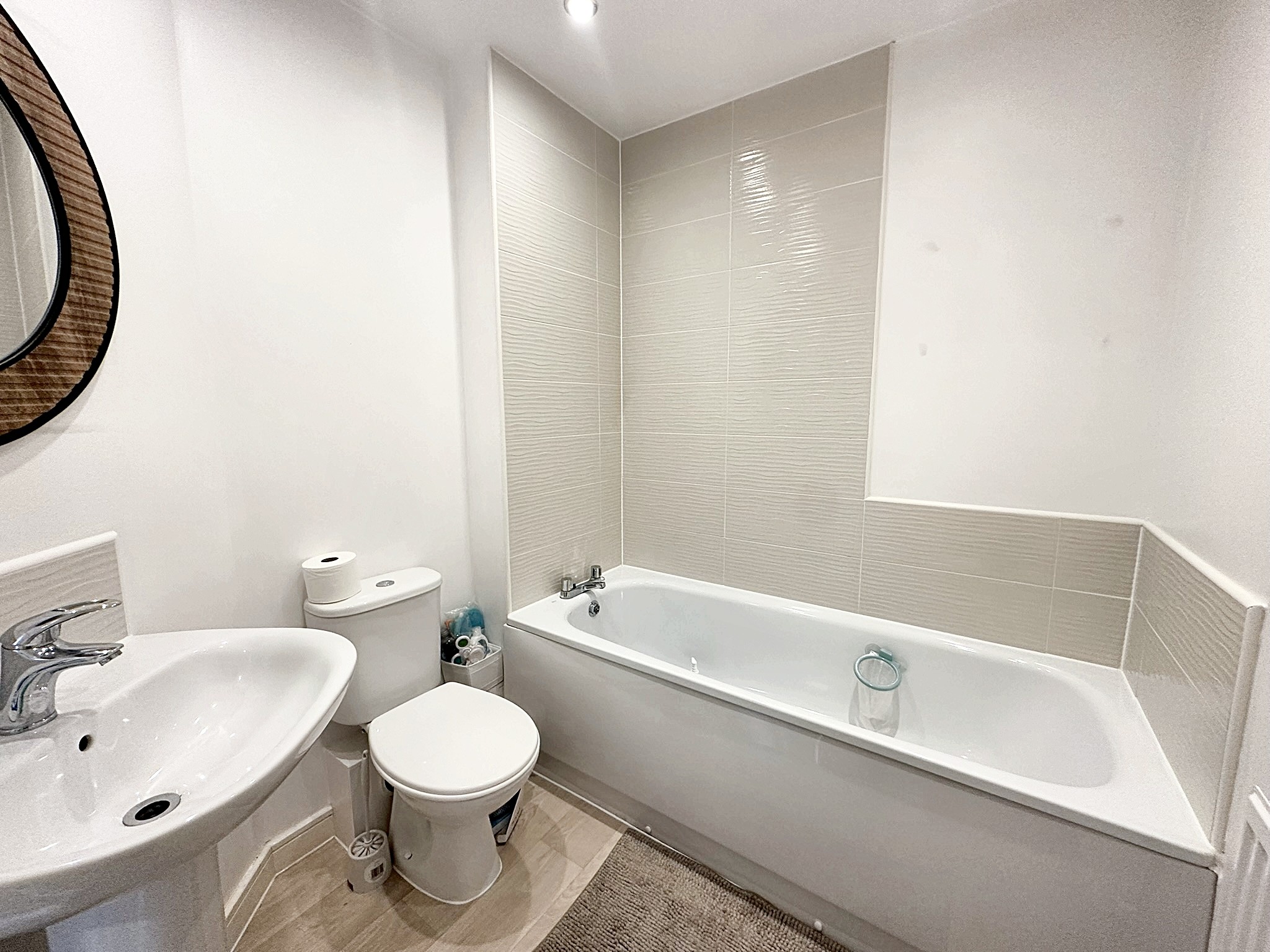 Upstairs, there are three bedrooms, including a main bedroom with fitted wardrobes and a private en-suite, offering a peaceful retreat at the end of the day. The two further bedrooms are ideal for children, guests, or even a home office, and a sleek, modern bathroom serves them all.